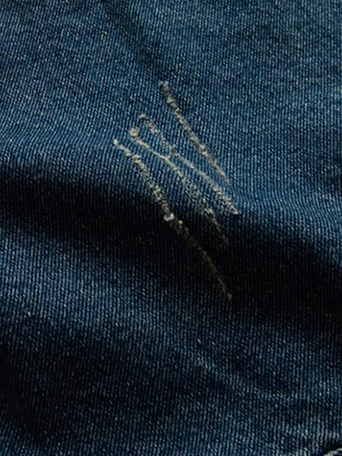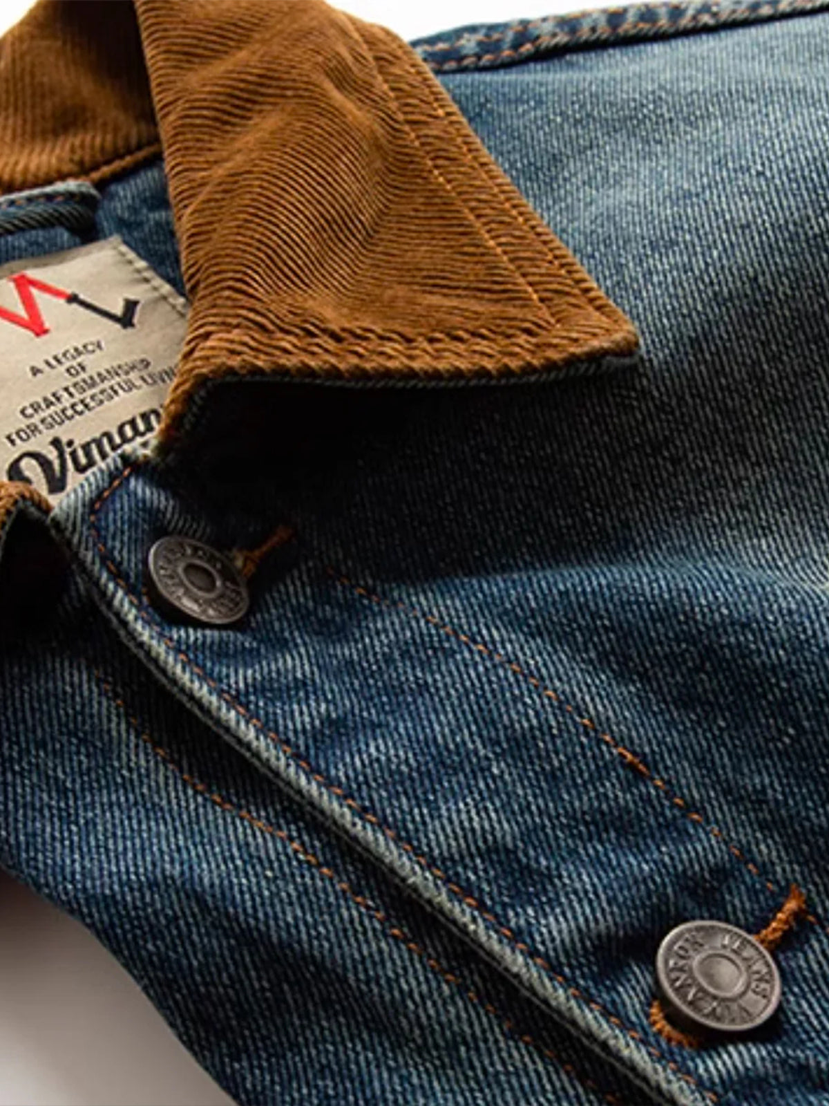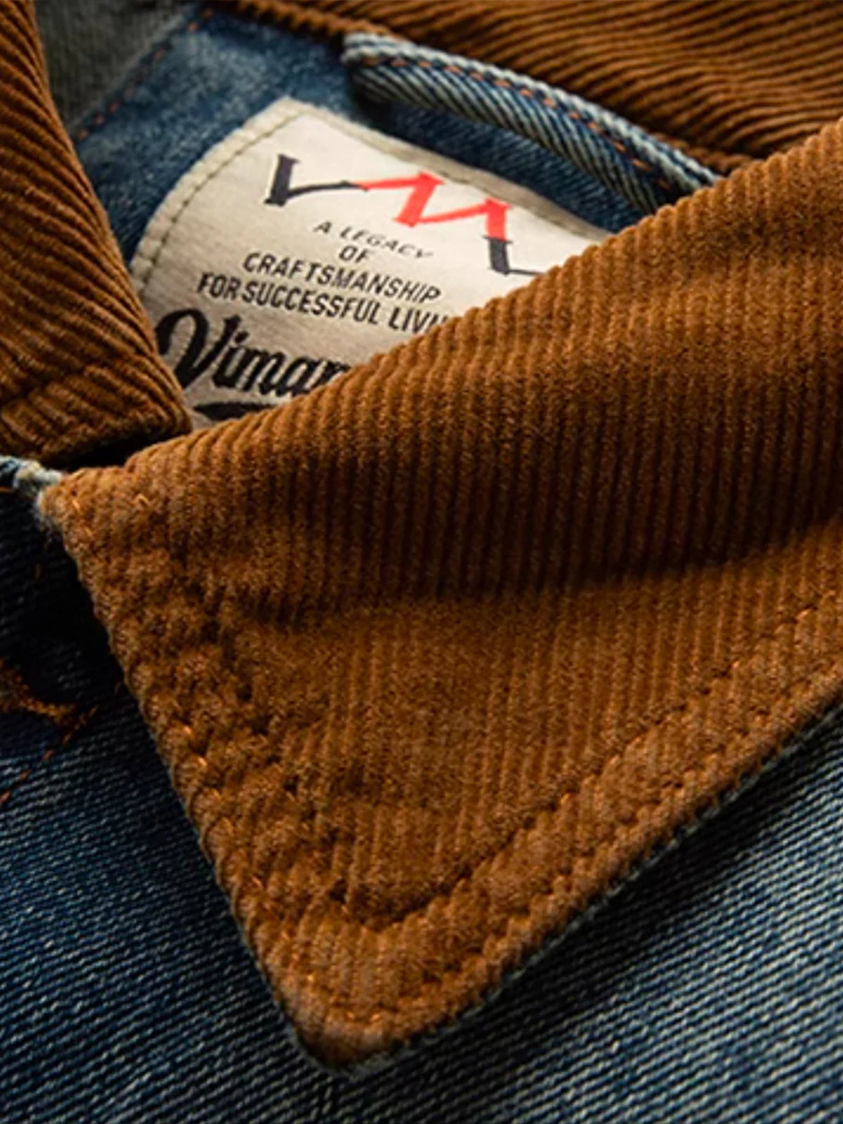 Corduroy Collar Scratch & Washed Denim Work Jacket
