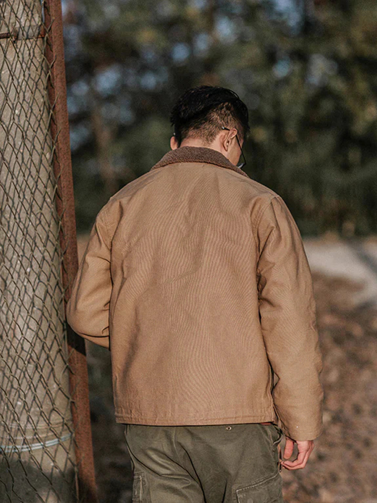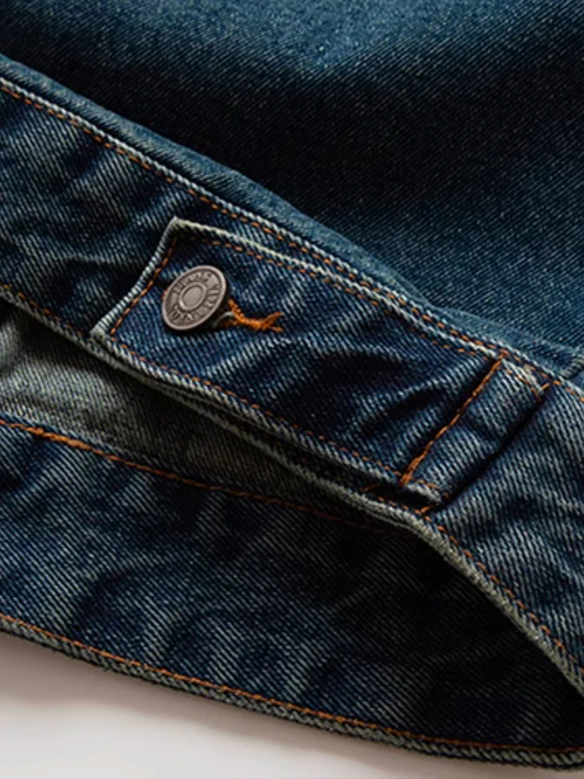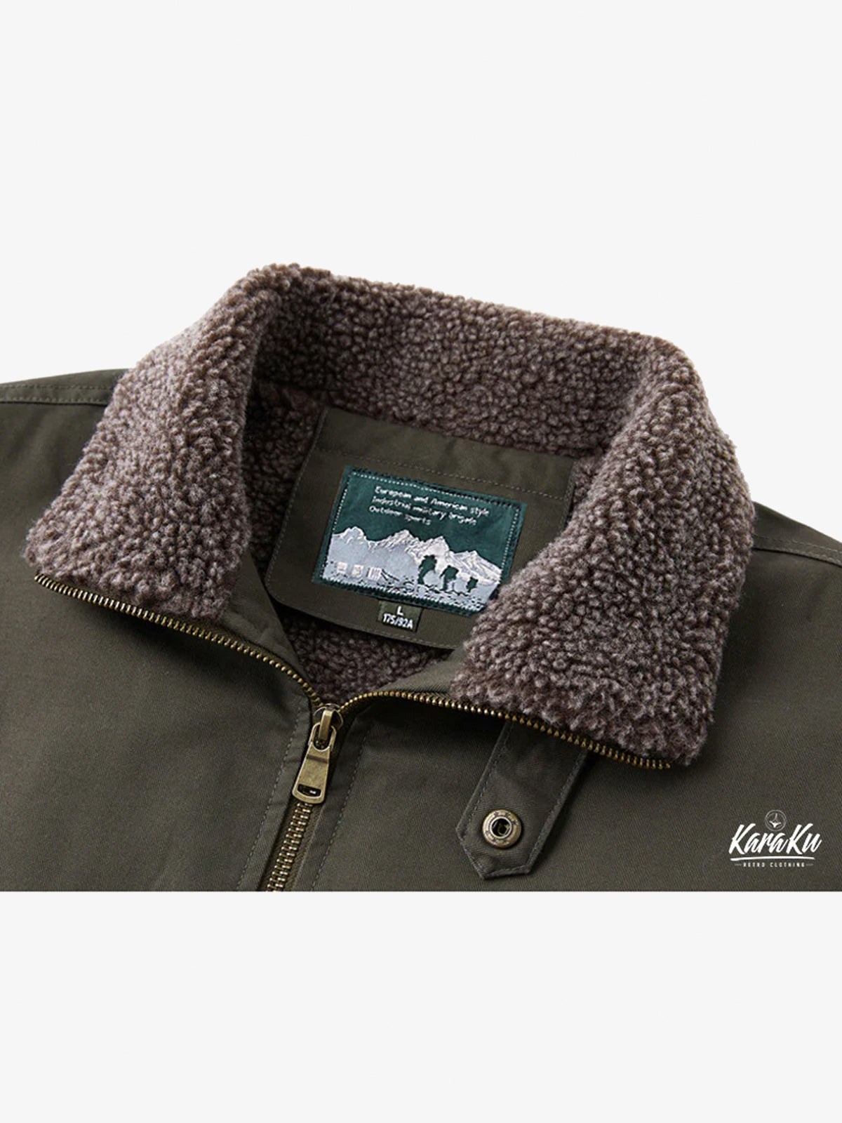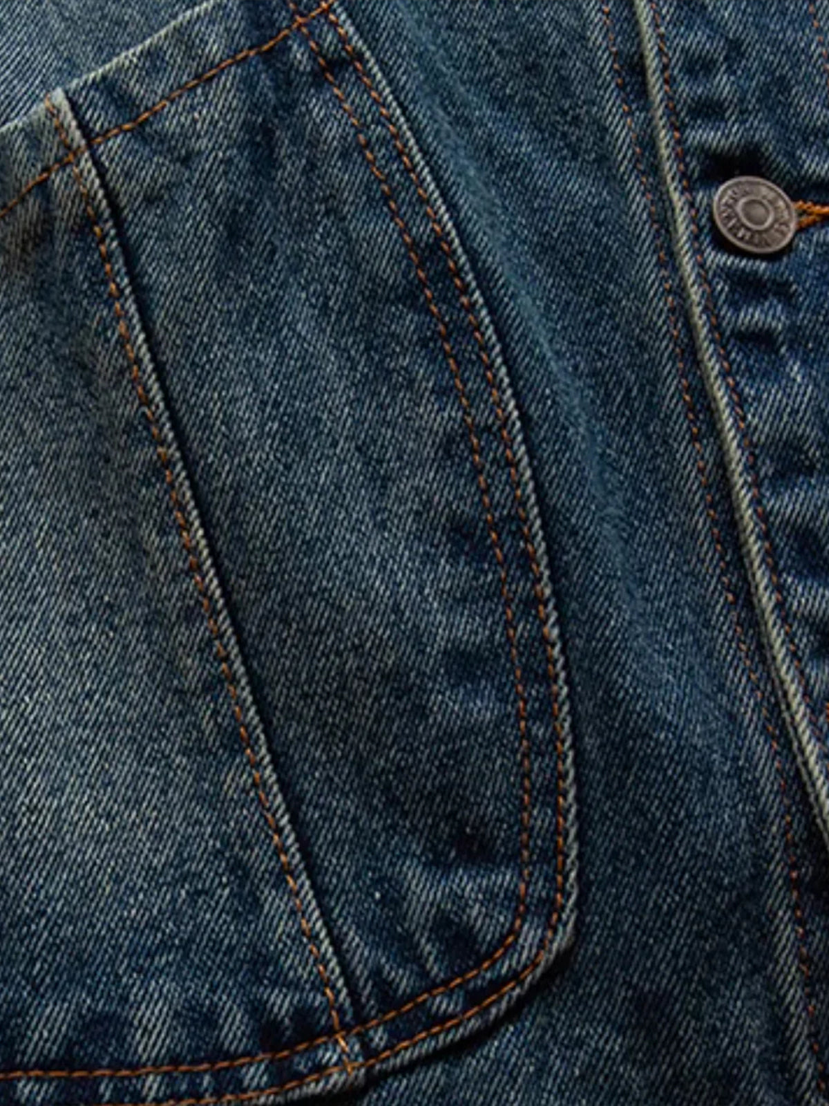 Corduroy Collar Scratch & Washed Denim Work Jacket