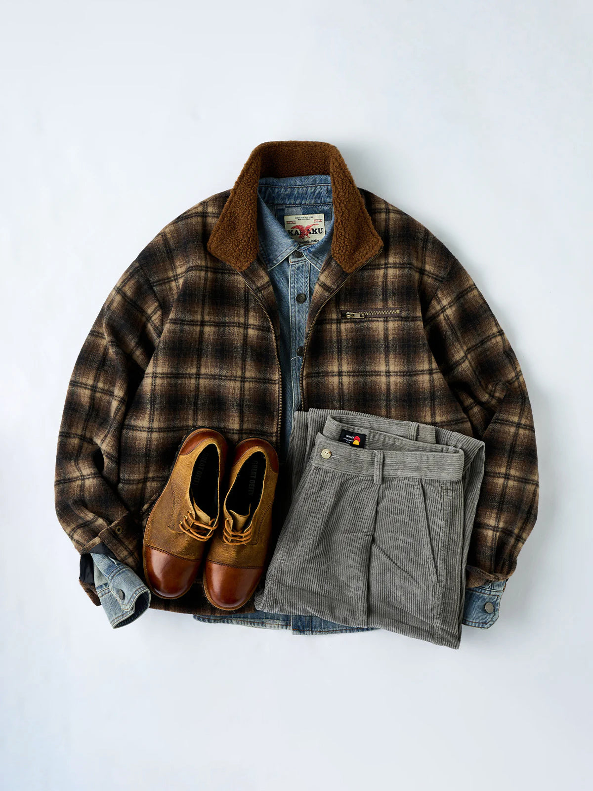 Corduroy Wrench Work Jacket with Mini Check Lining