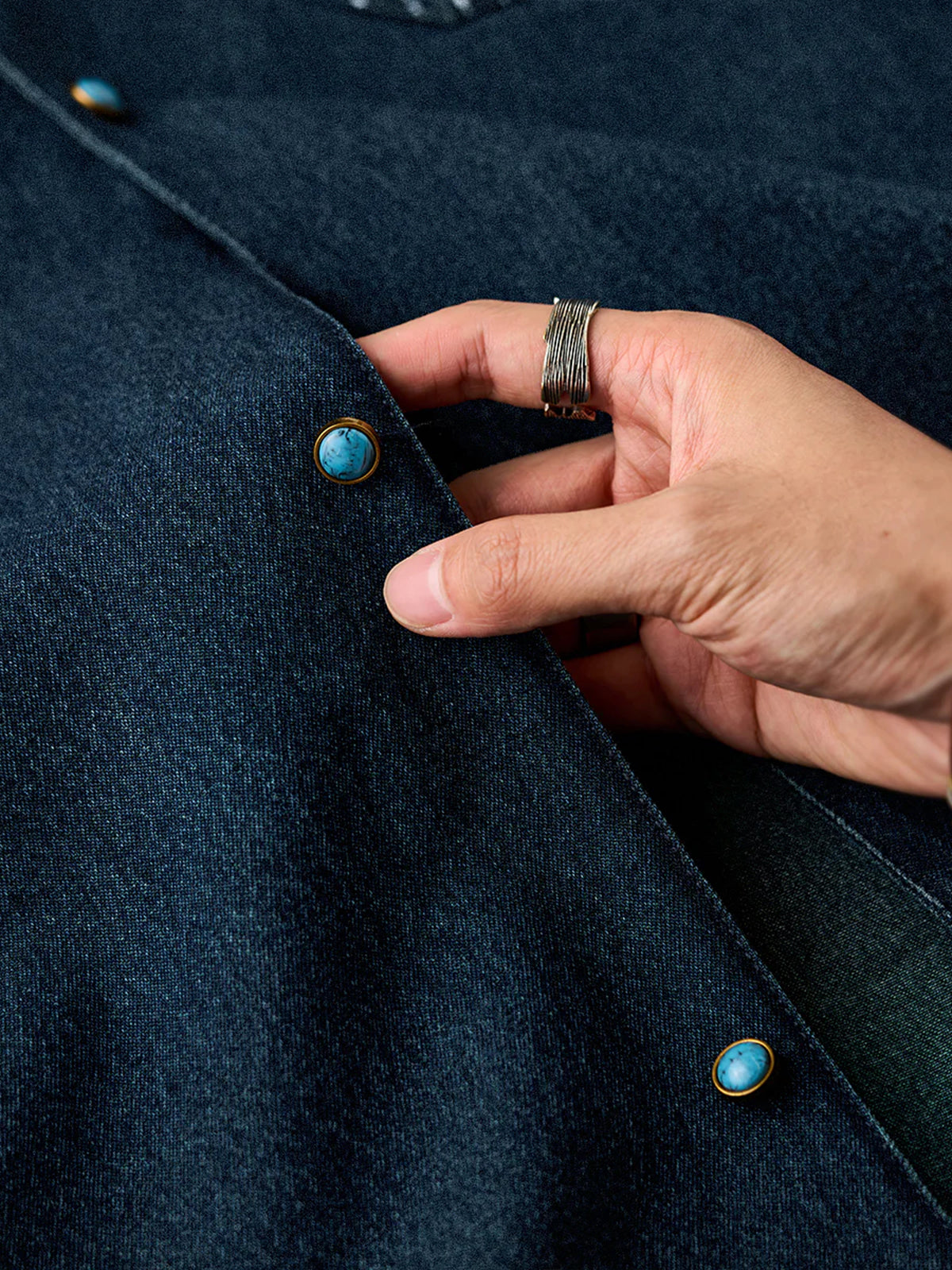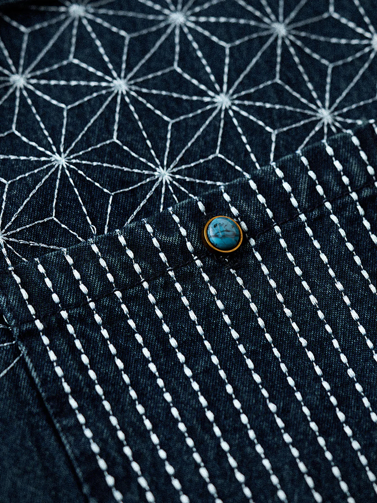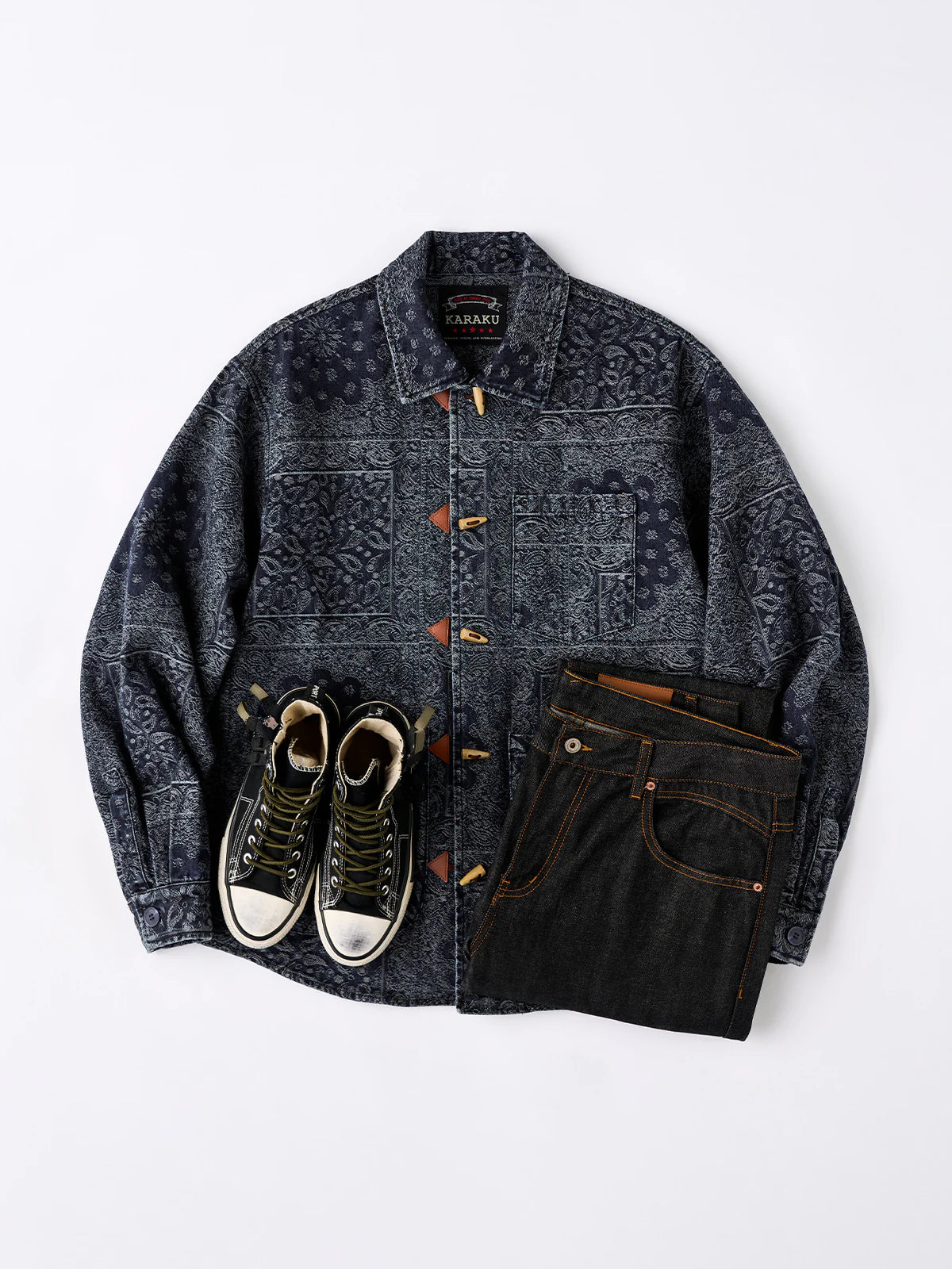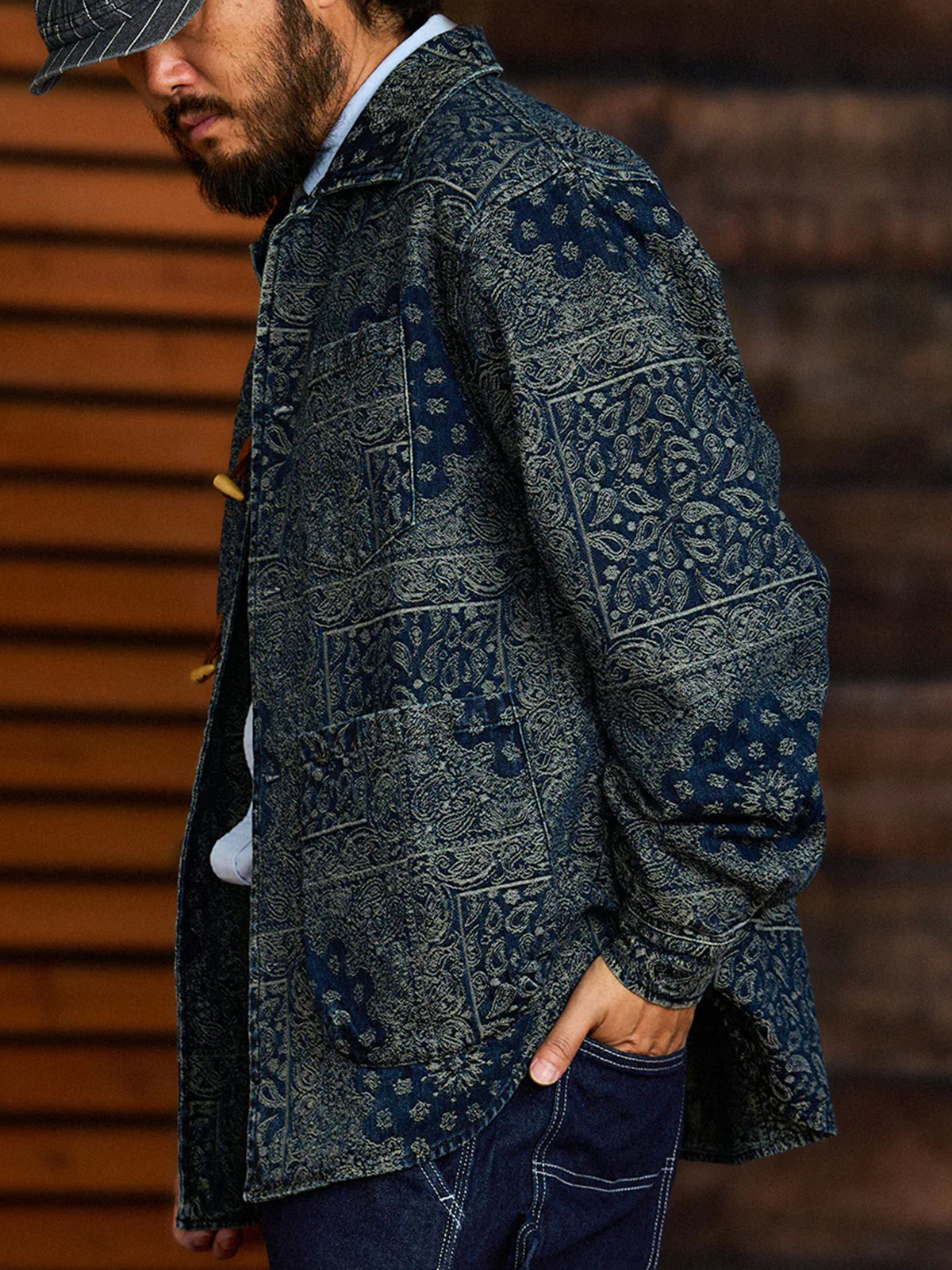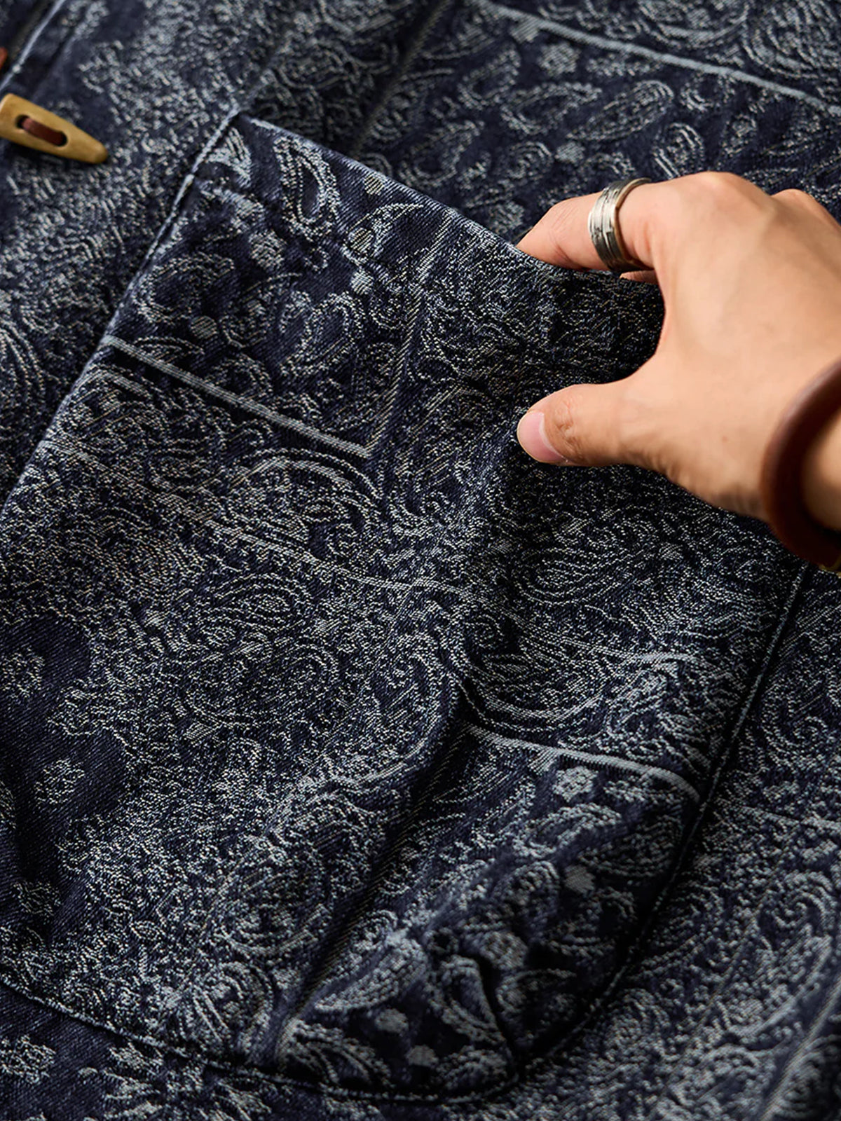 Toggle Buttons Paisley Jacquard Denim Shirt