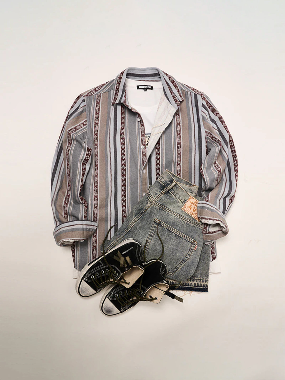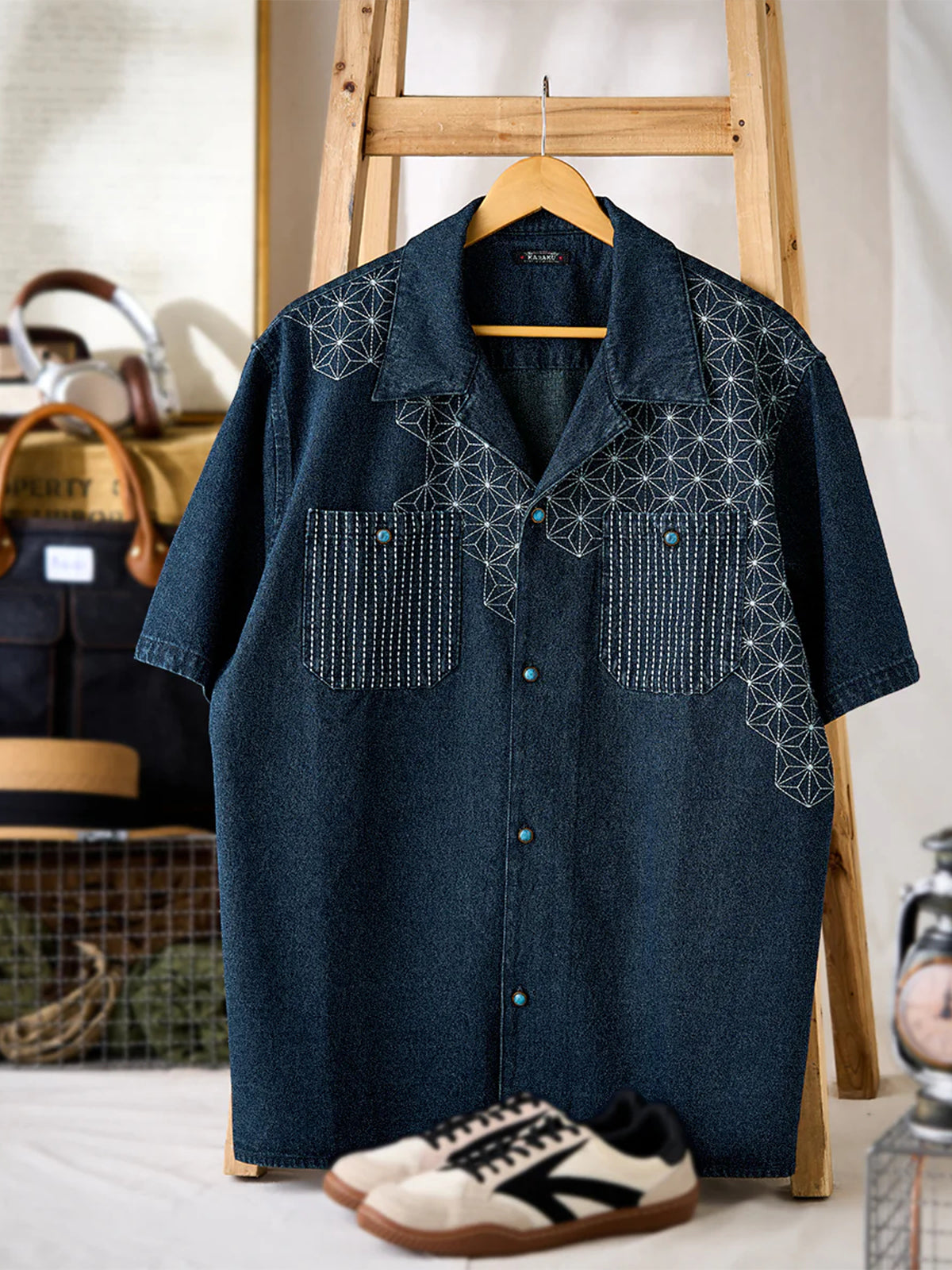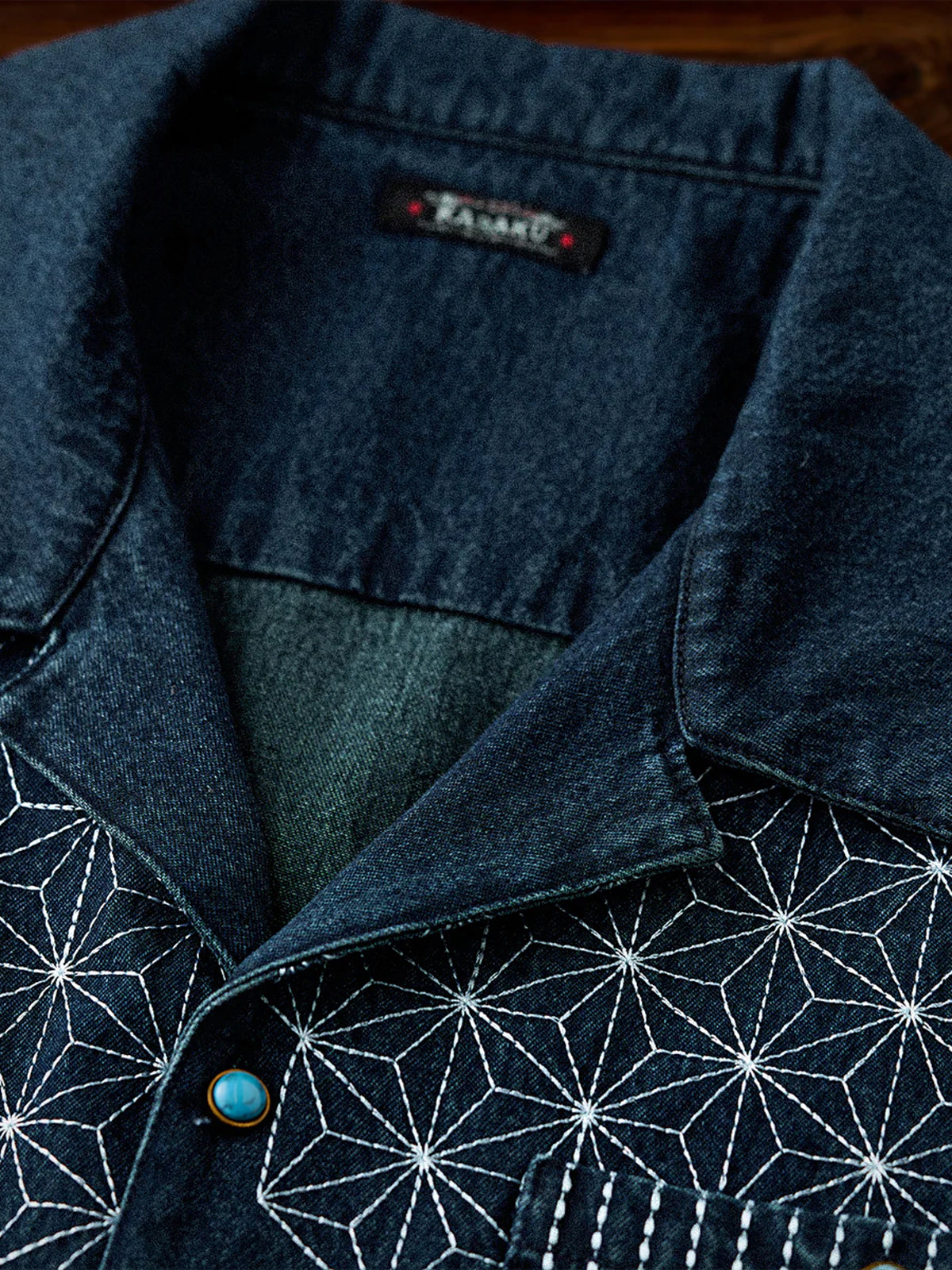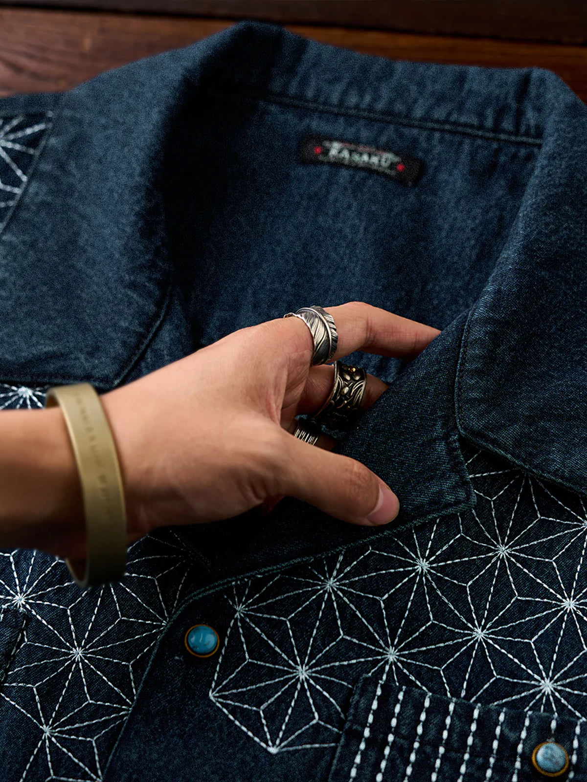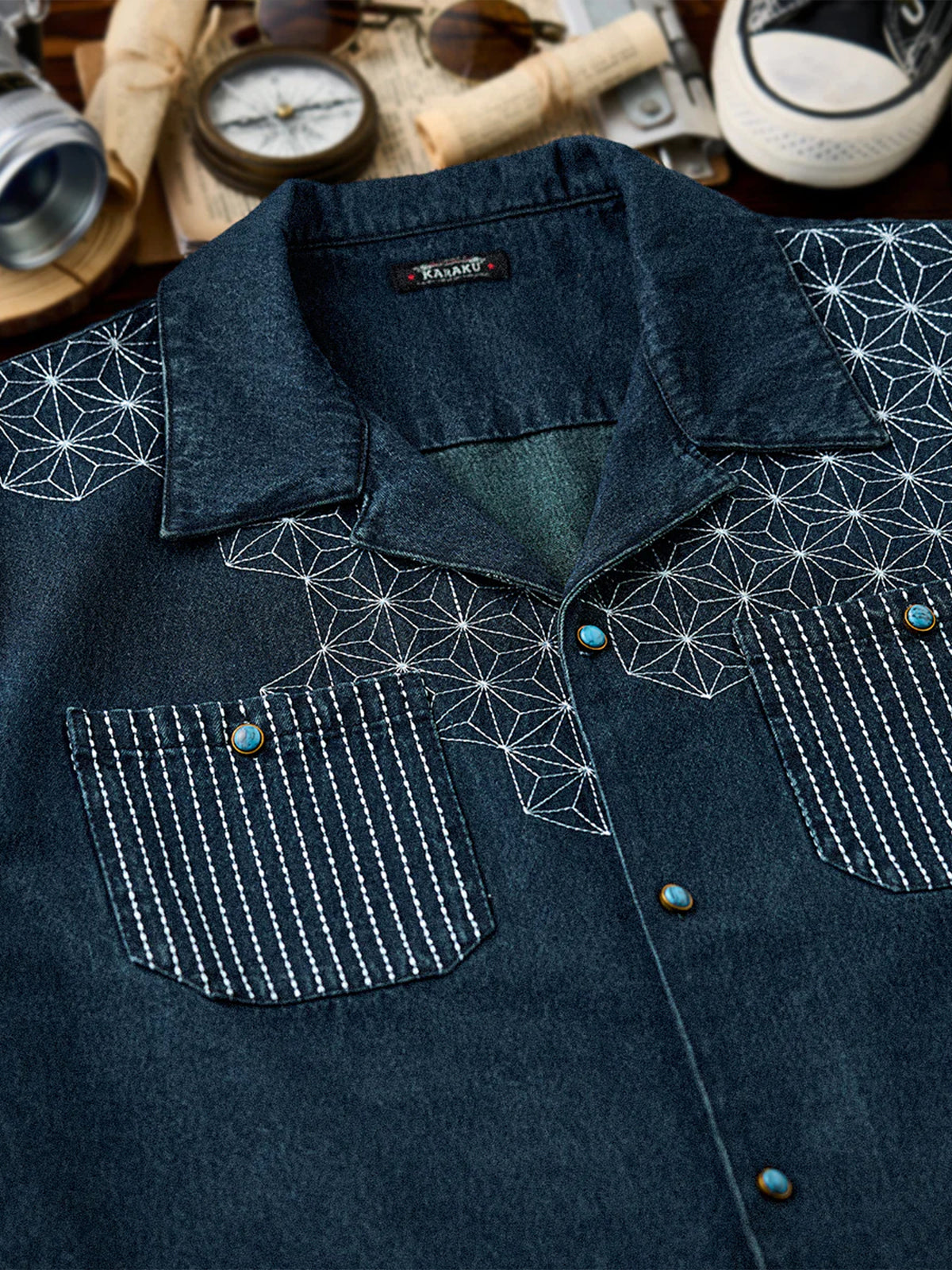 Toggle Buttons Paisley Jacquard Denim Shirt