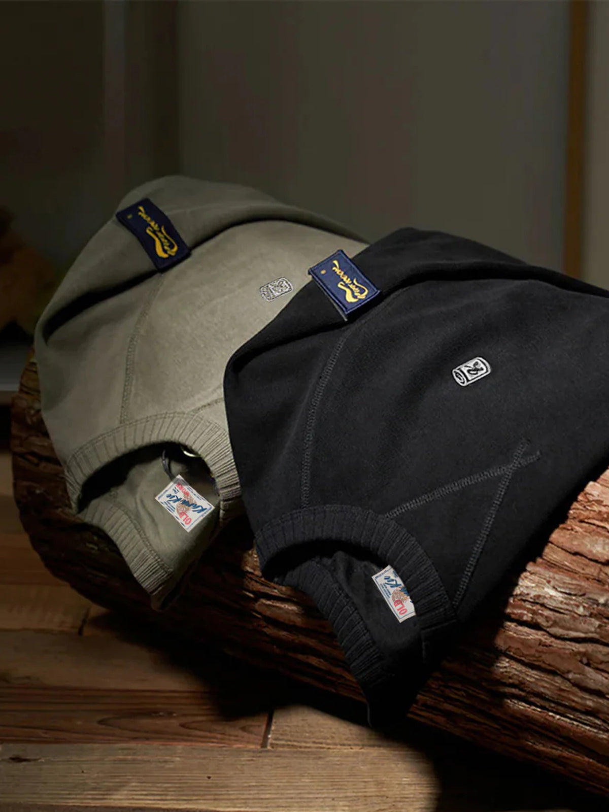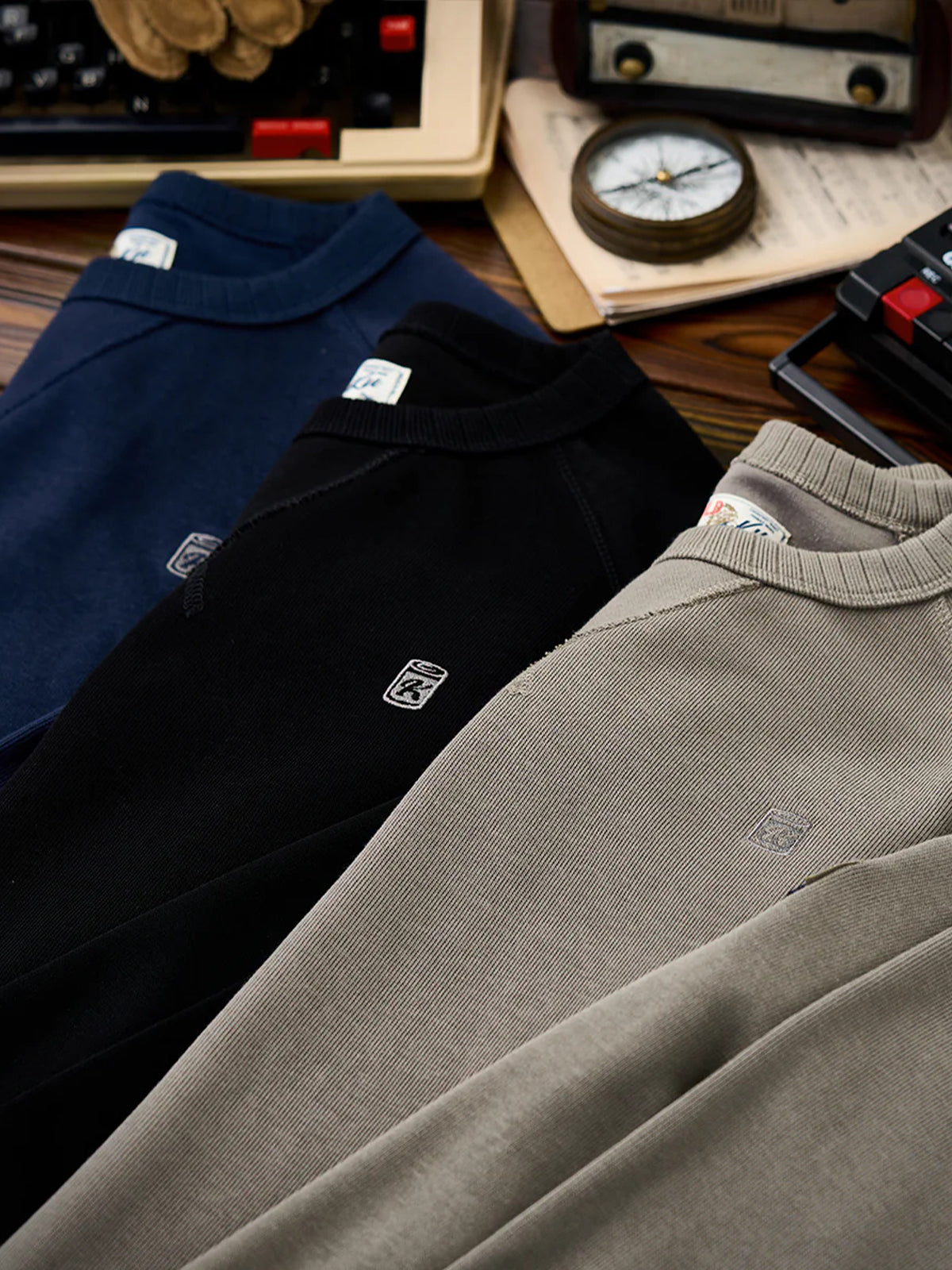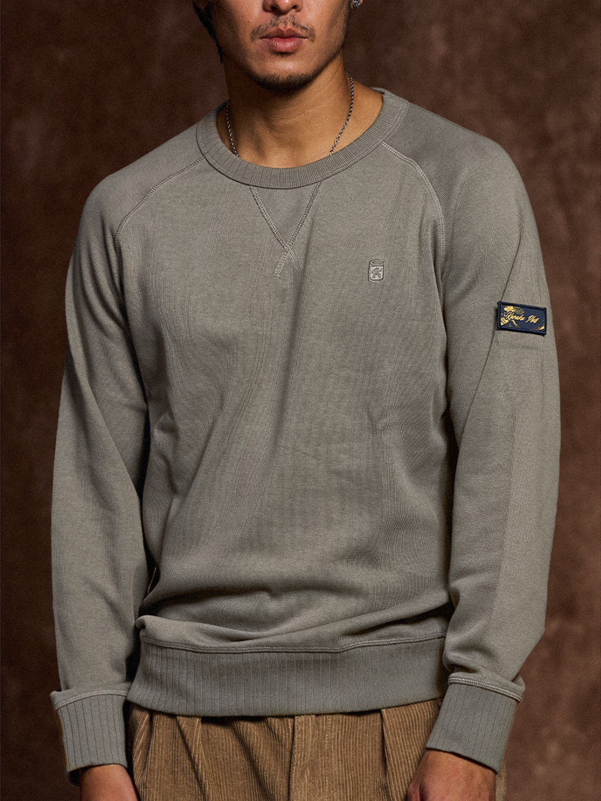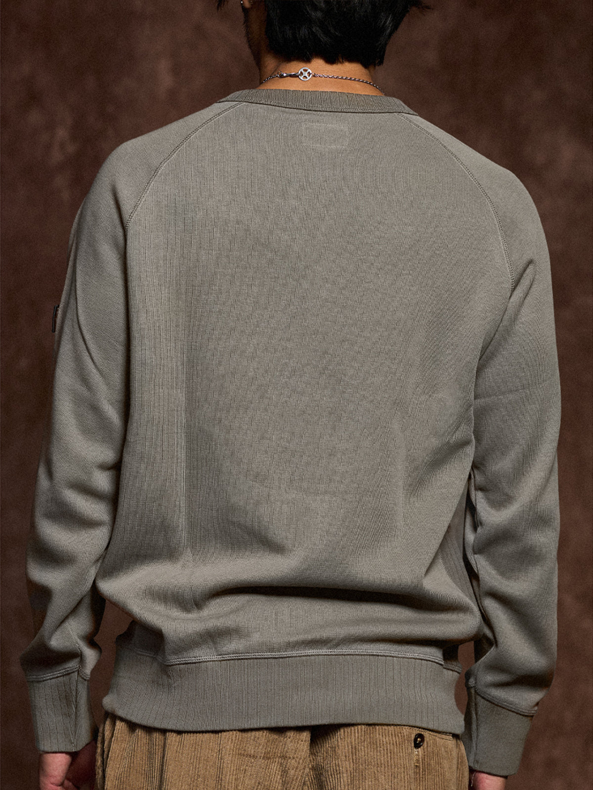Washed Finish Mini Embroidery & Color-Variation Pocket Long Sleeve Tee