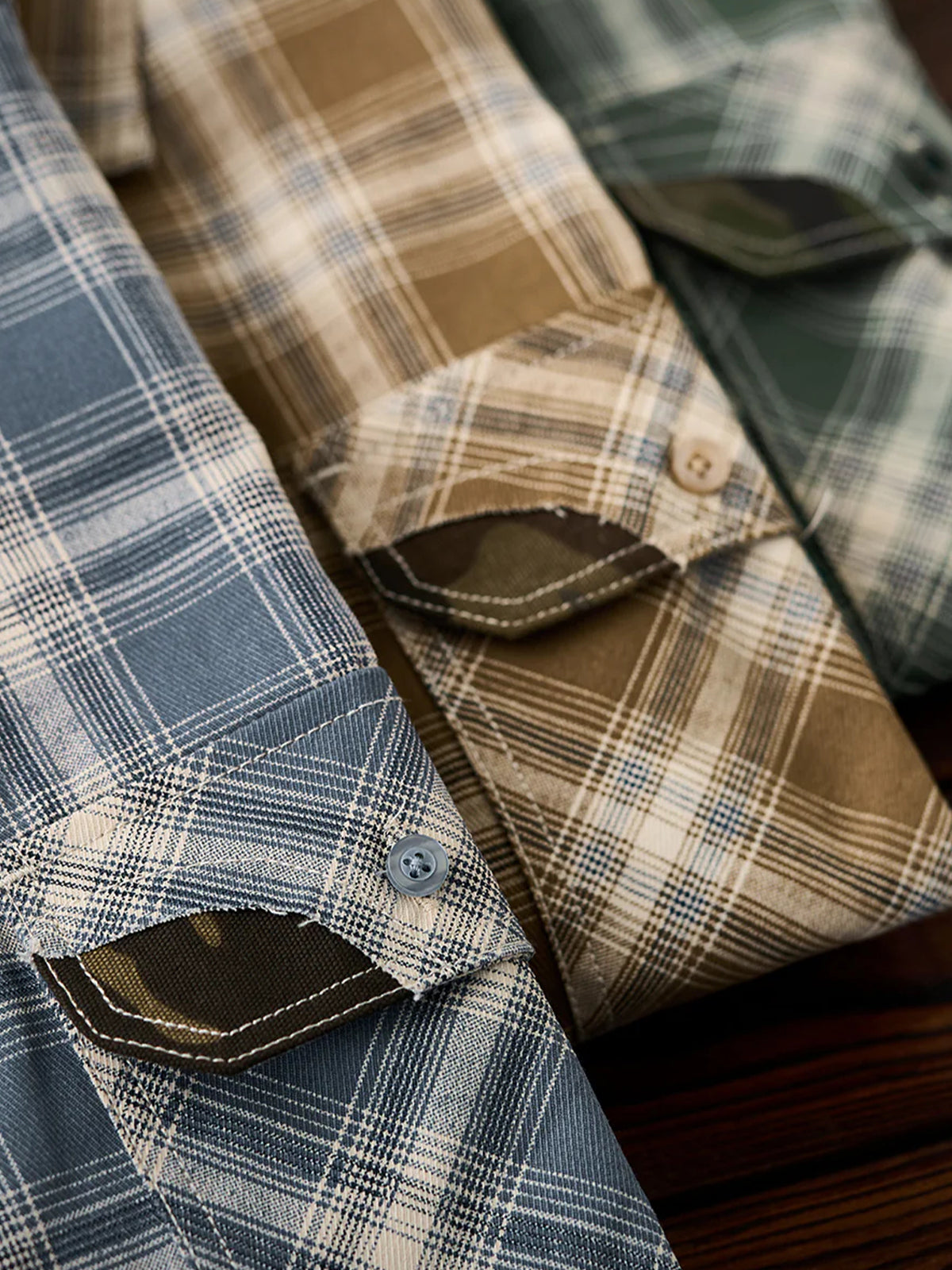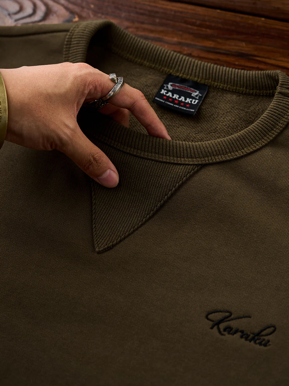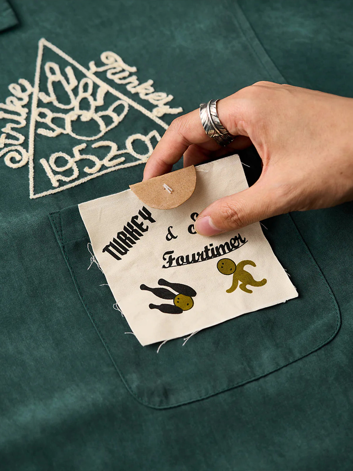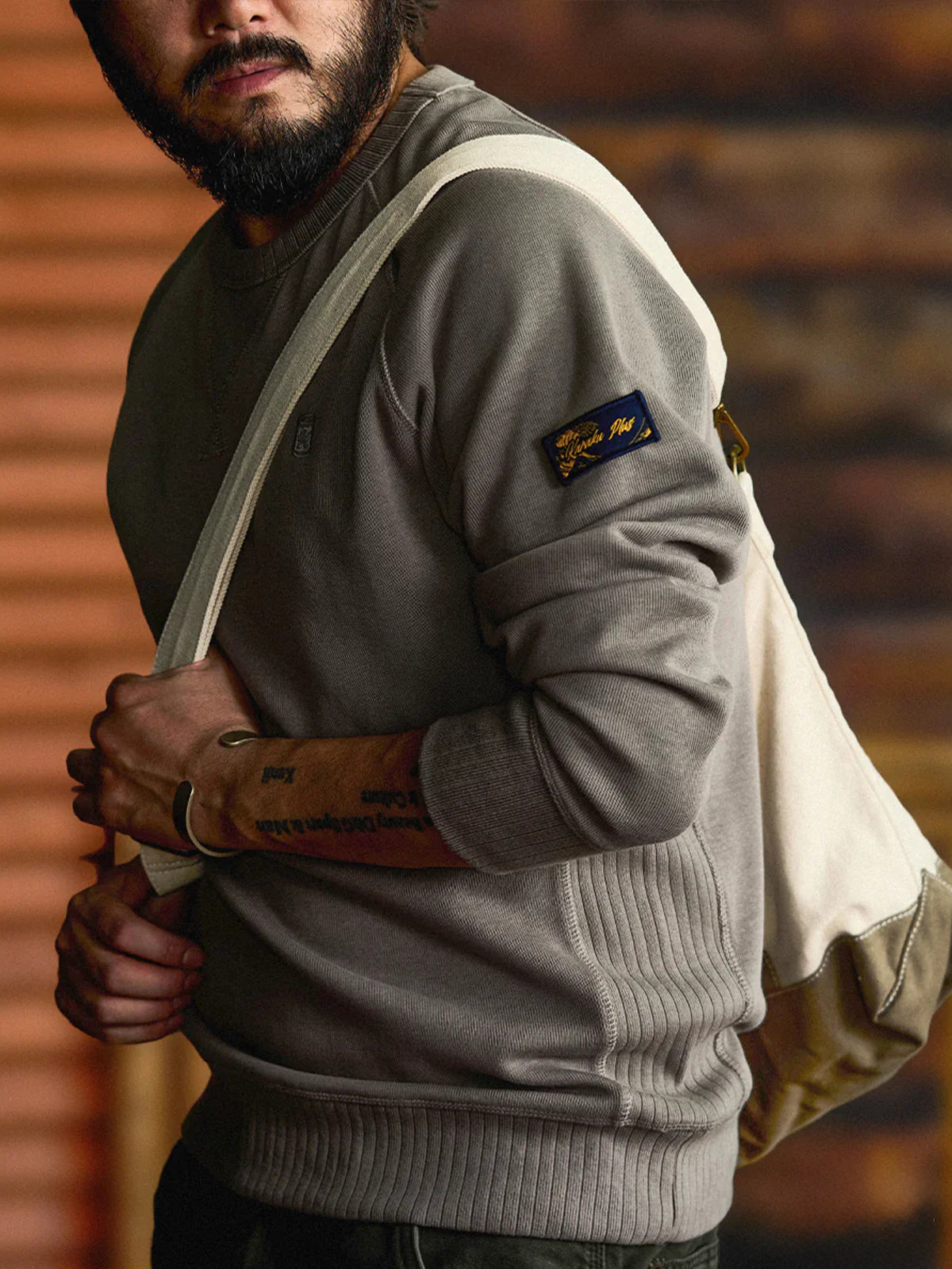 Washed Finish Mini Embroidery & Color-Variation Pocket Long Sleeve Tee
