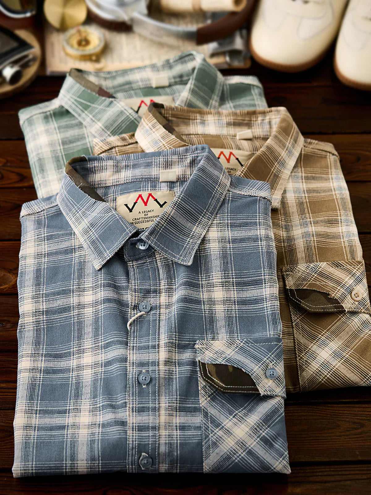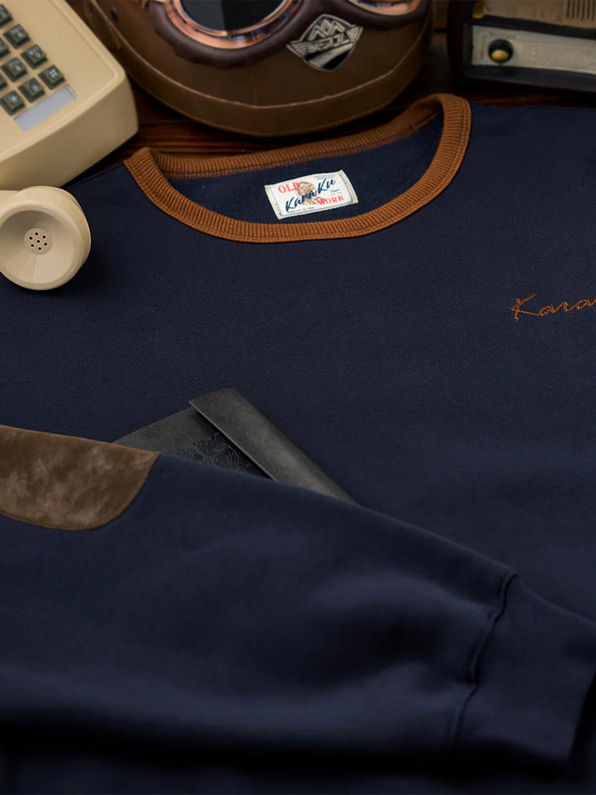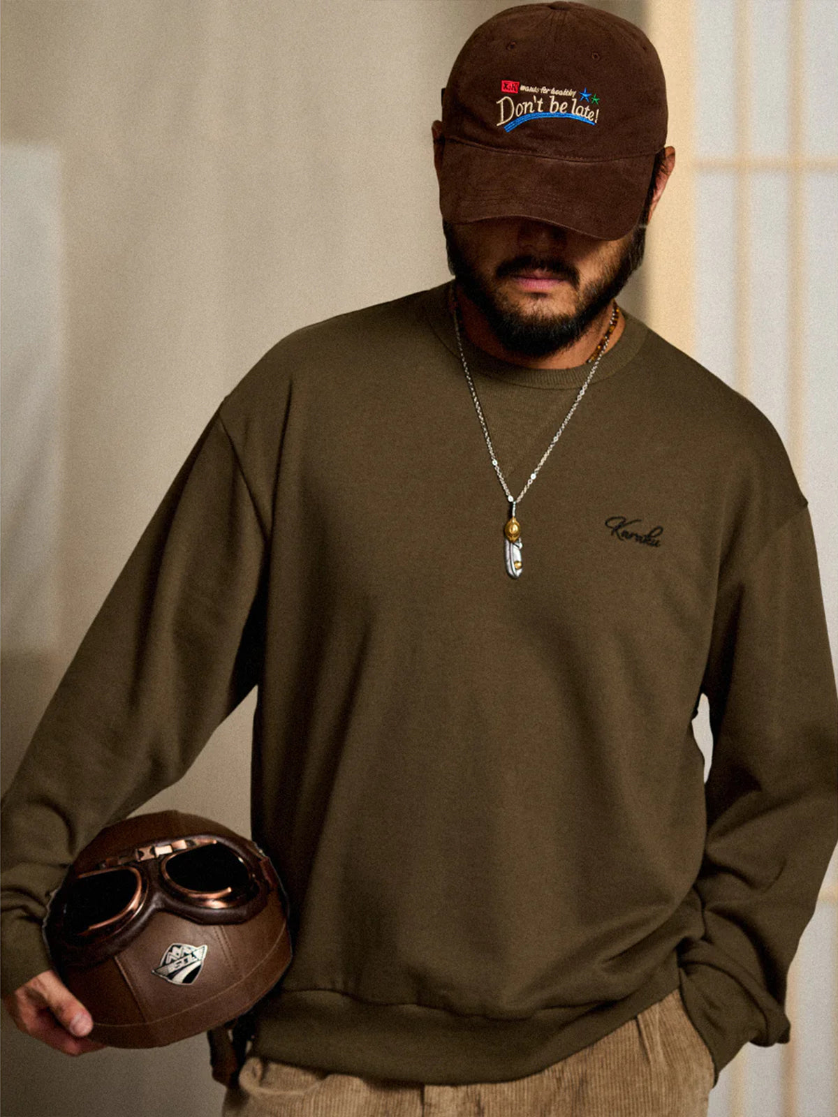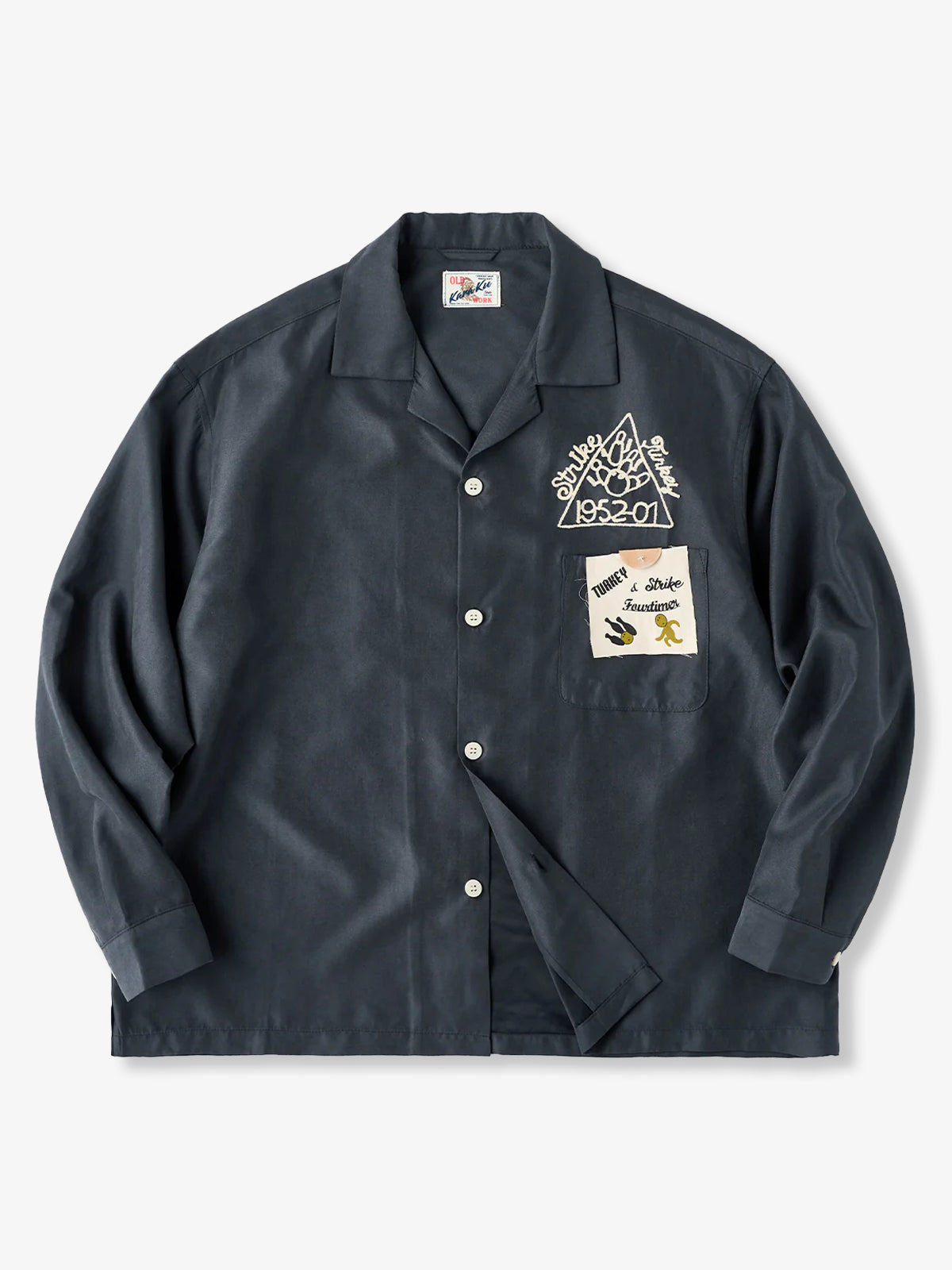 Washed Finish Mini Embroidery & Color-Variation Pocket Long Sleeve Tee