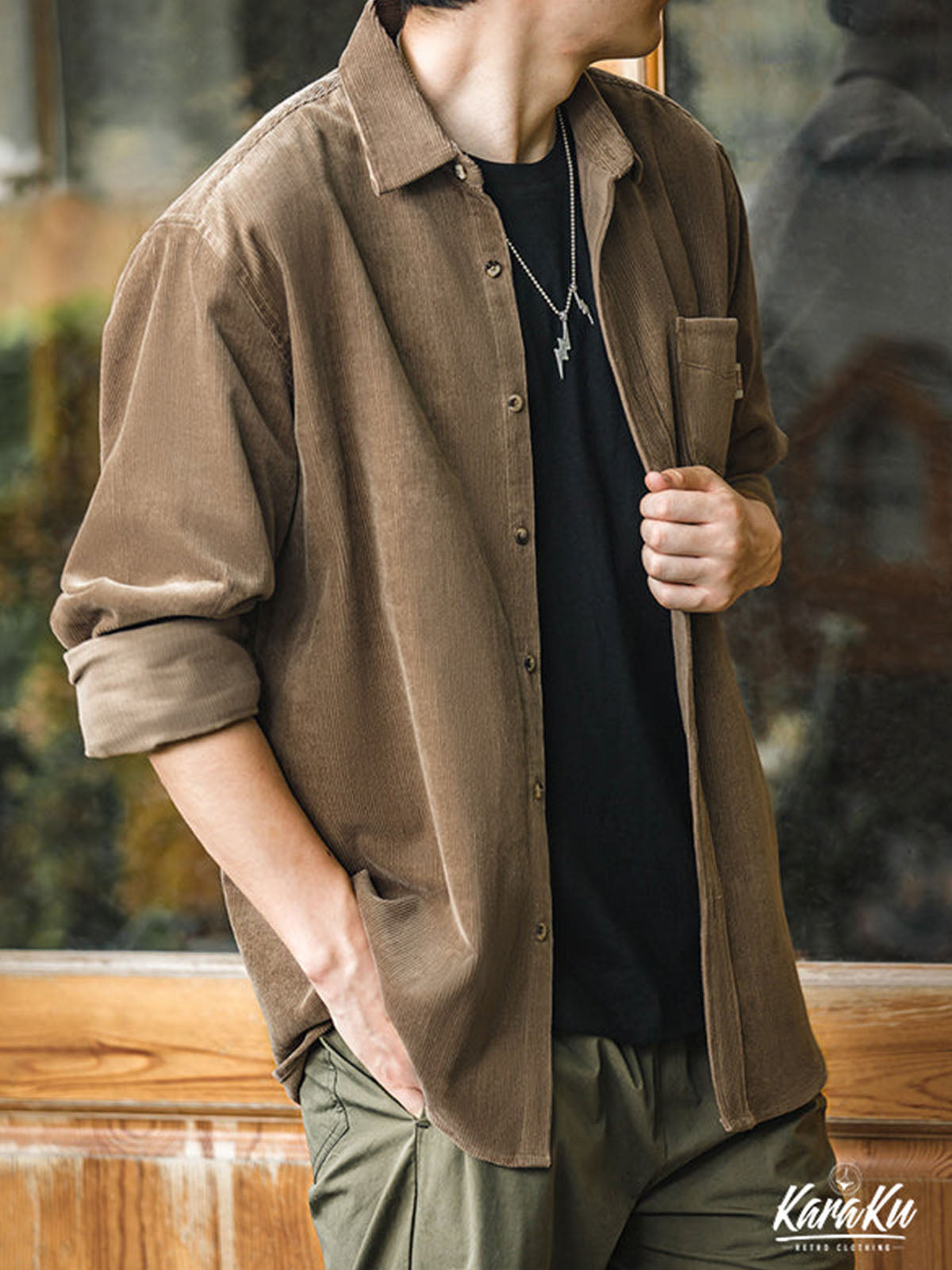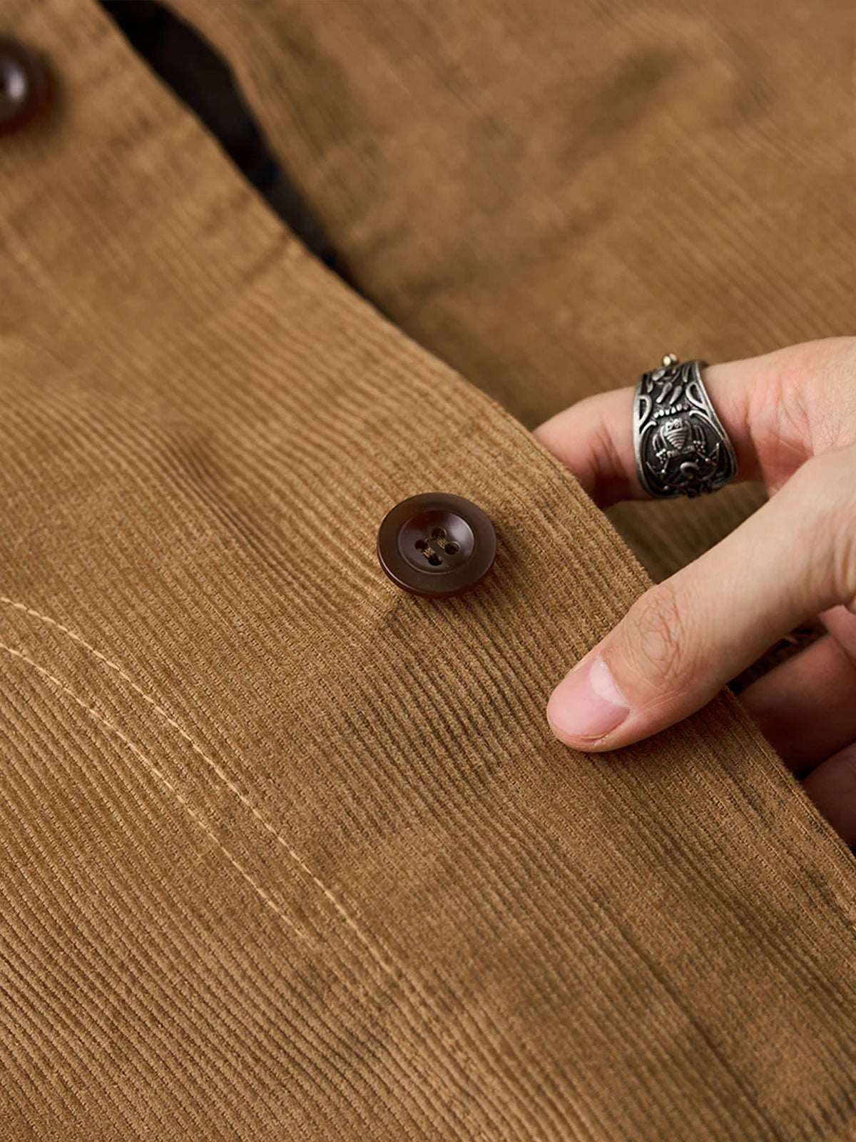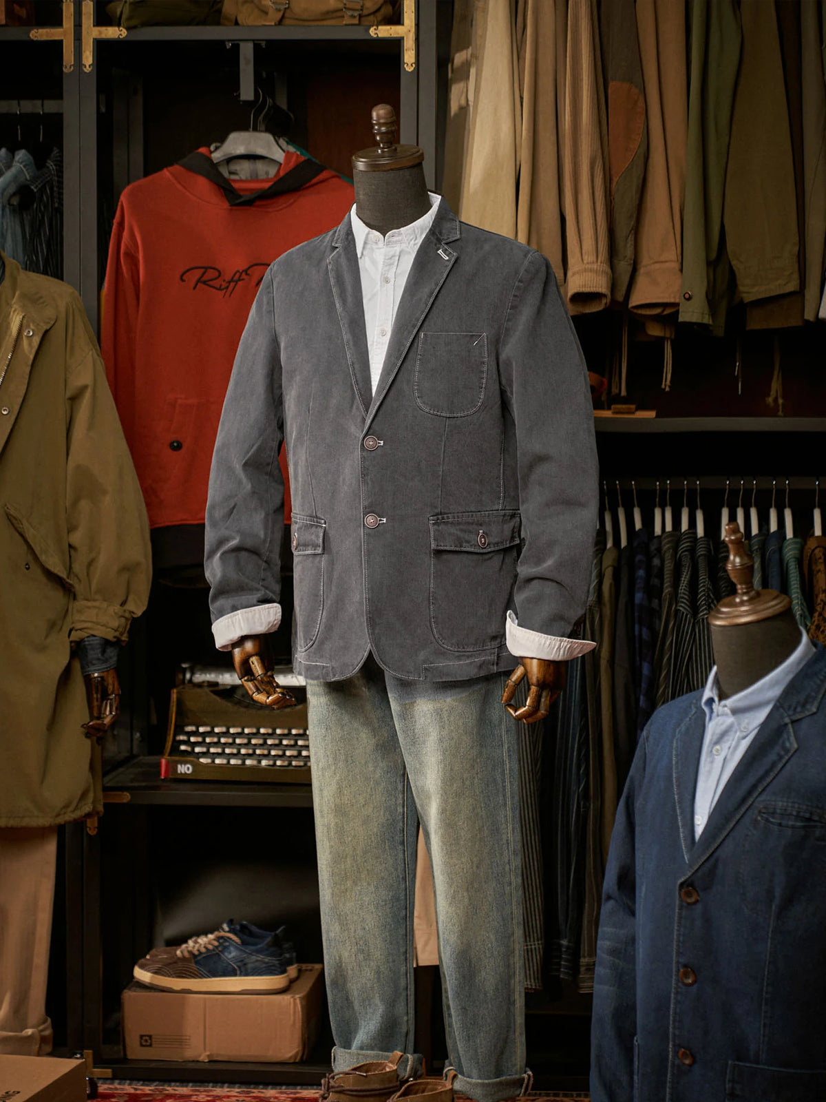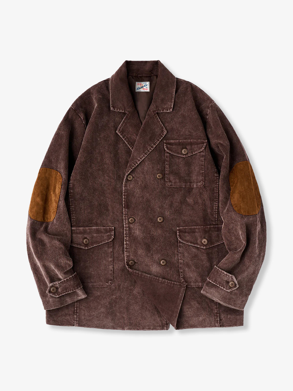 Elbow Suede Patches Washed Corduroy Tailored Jacket