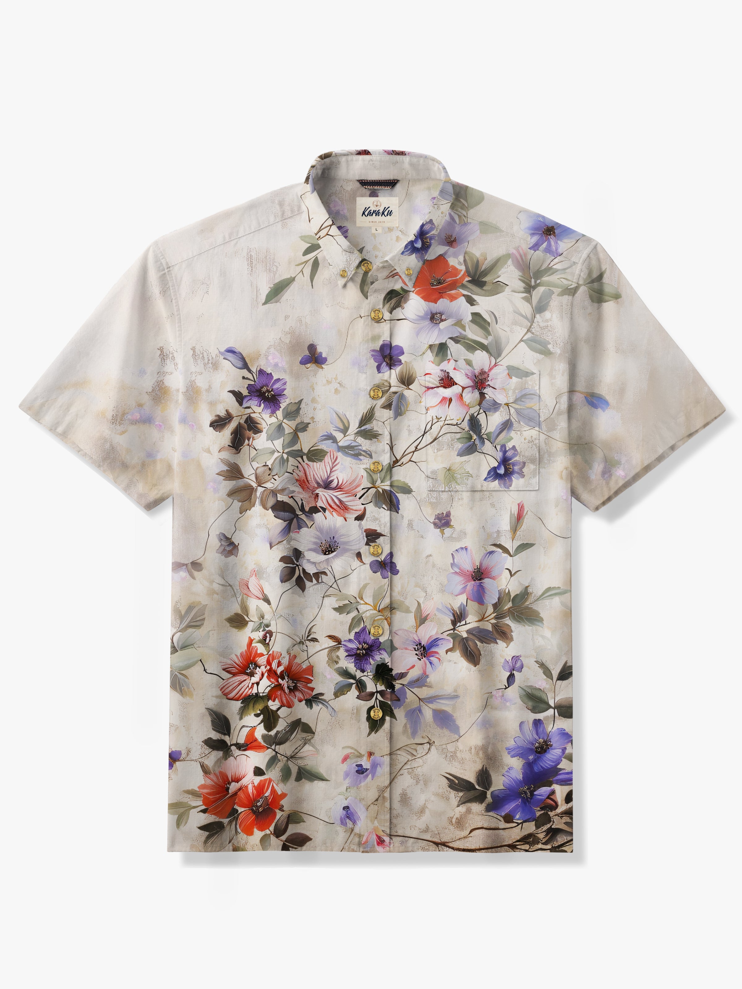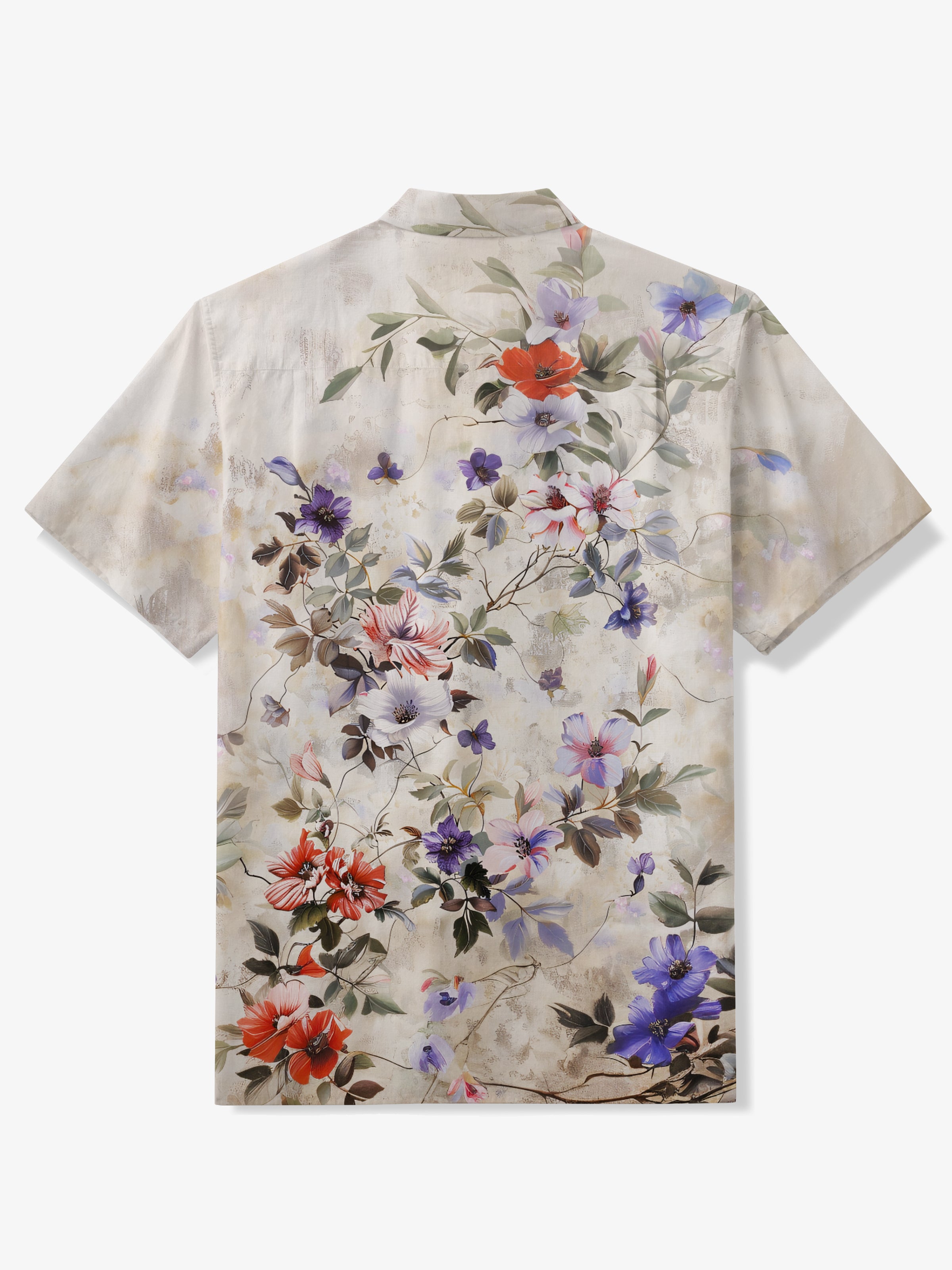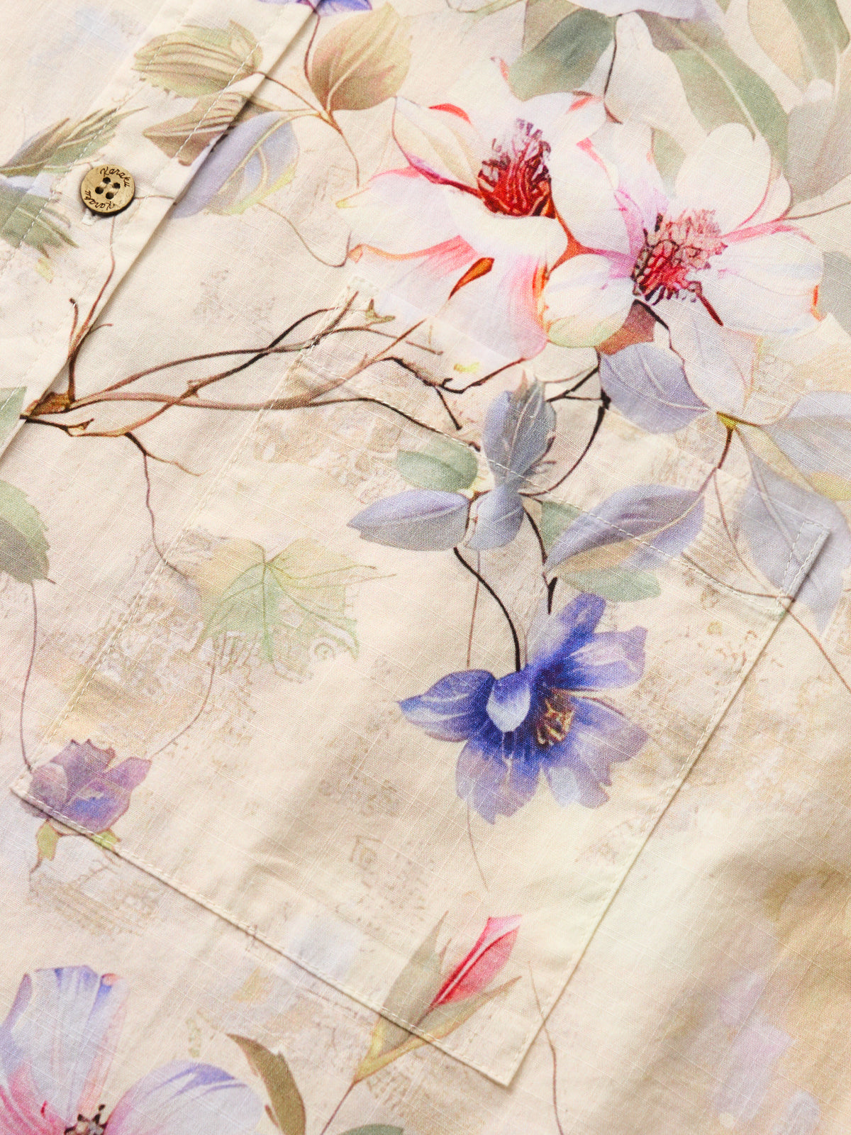 Vintage Tropical Patterns Seersucker Camp Shirt