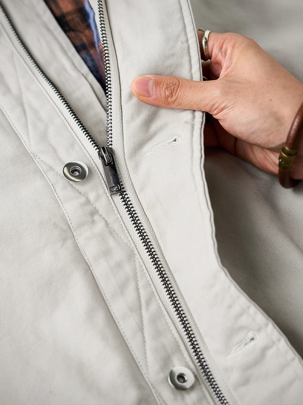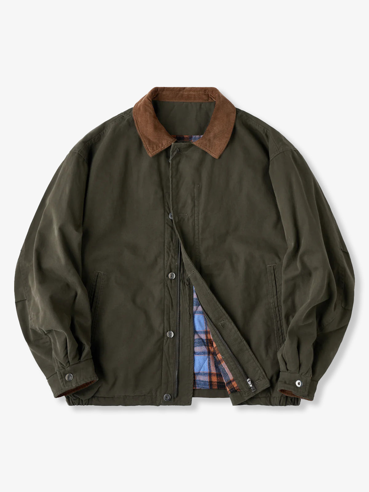 Corduroy Collar Quilted Cotton Jacket with Checked Lining