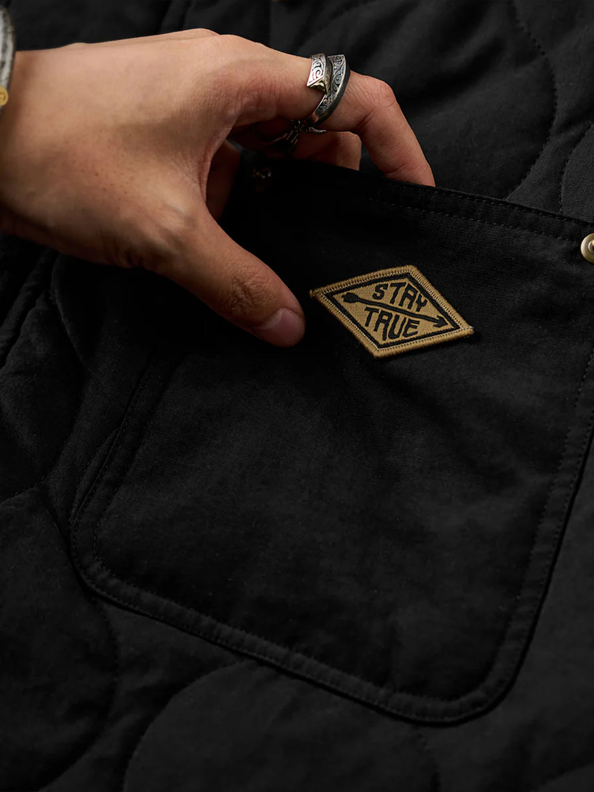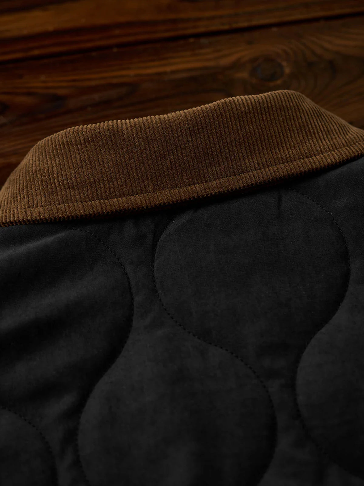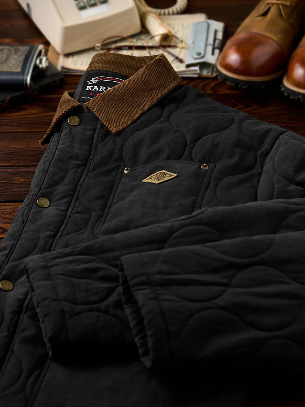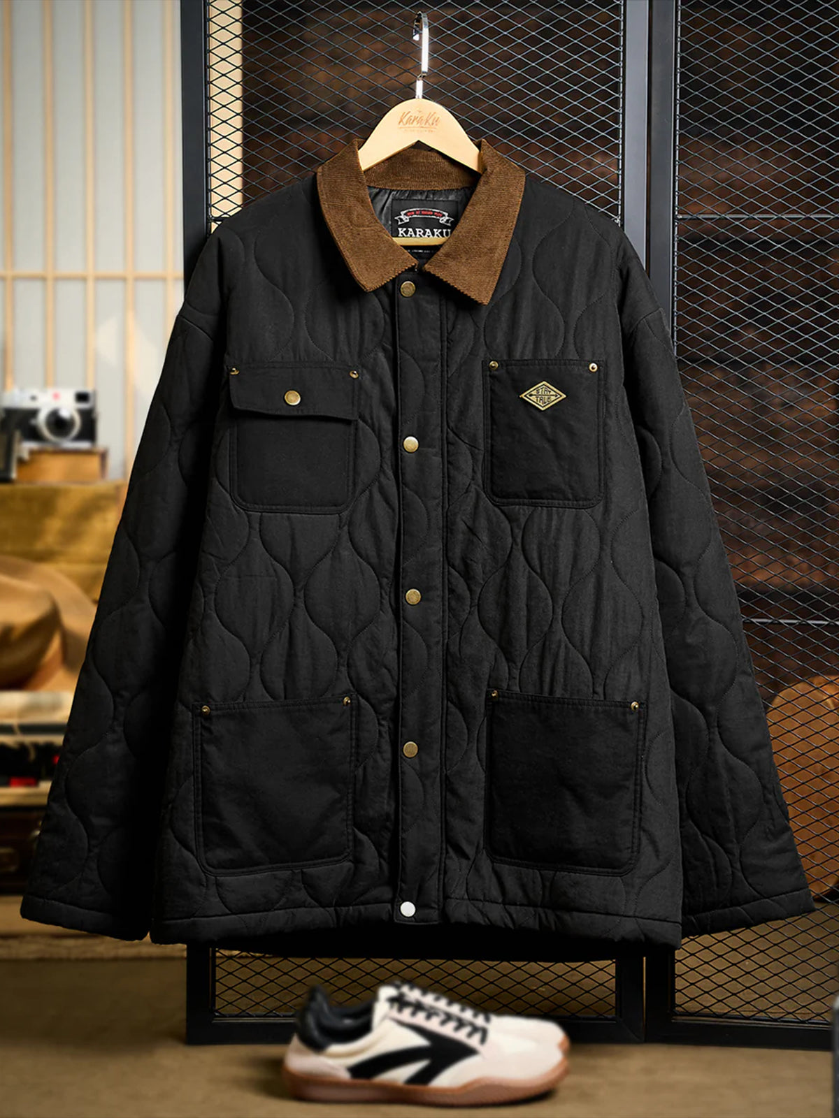 [Pre-Order] Corduroy-Collar Quilted Peach-Skin Jacket (4-Pocket Design)