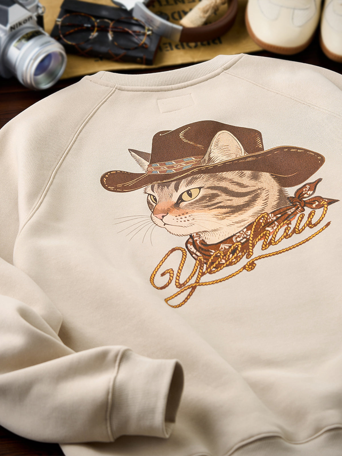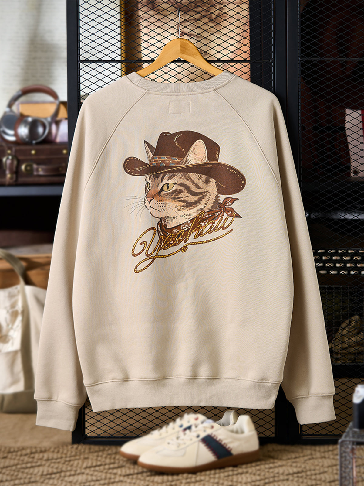 [Pre-Order] Cowboy Cat Fleece-Lined Graphic Sweatshirt