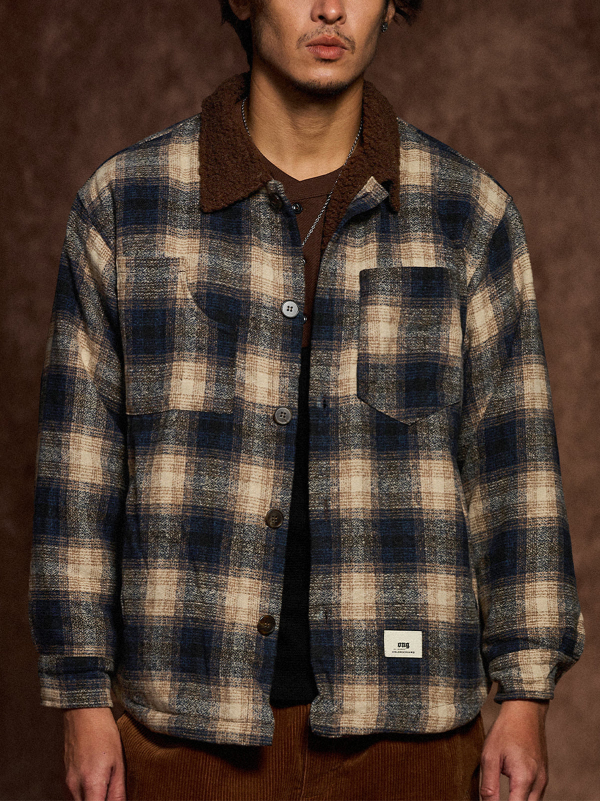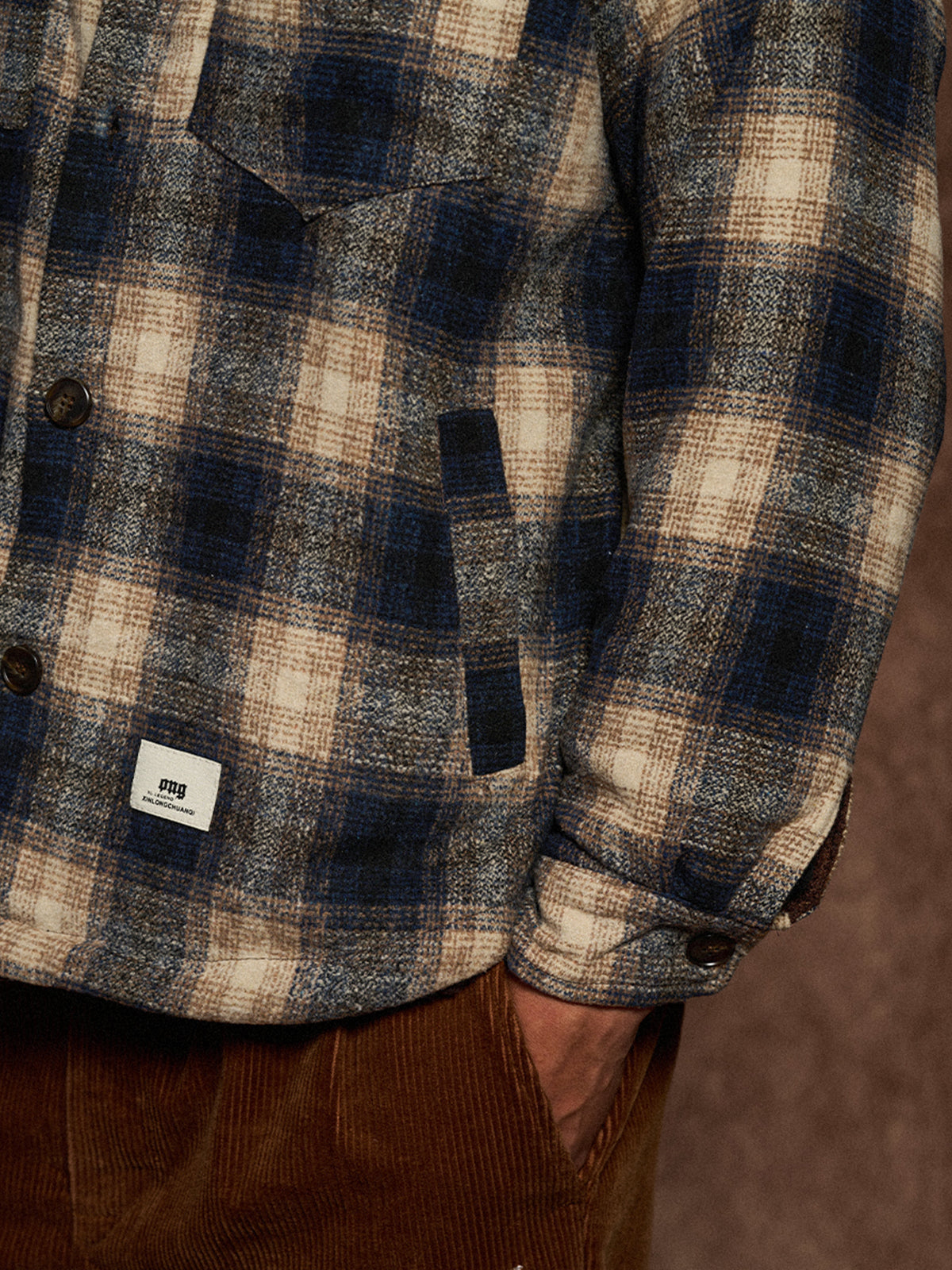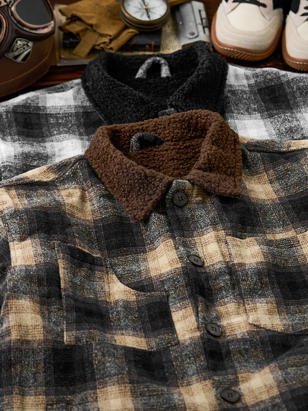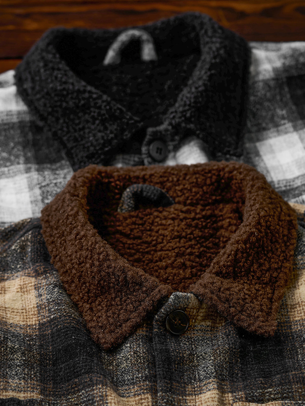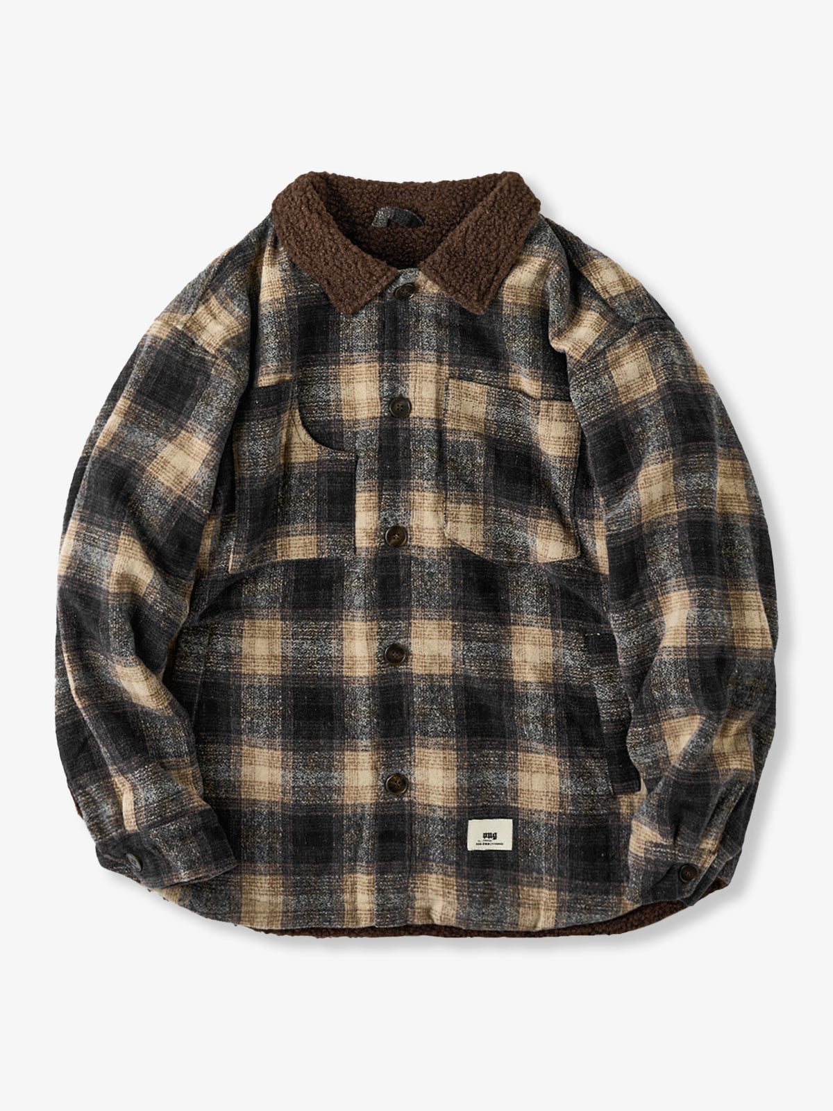 Lined Long Sleeve Wool-Blend Tweed Check Shirt