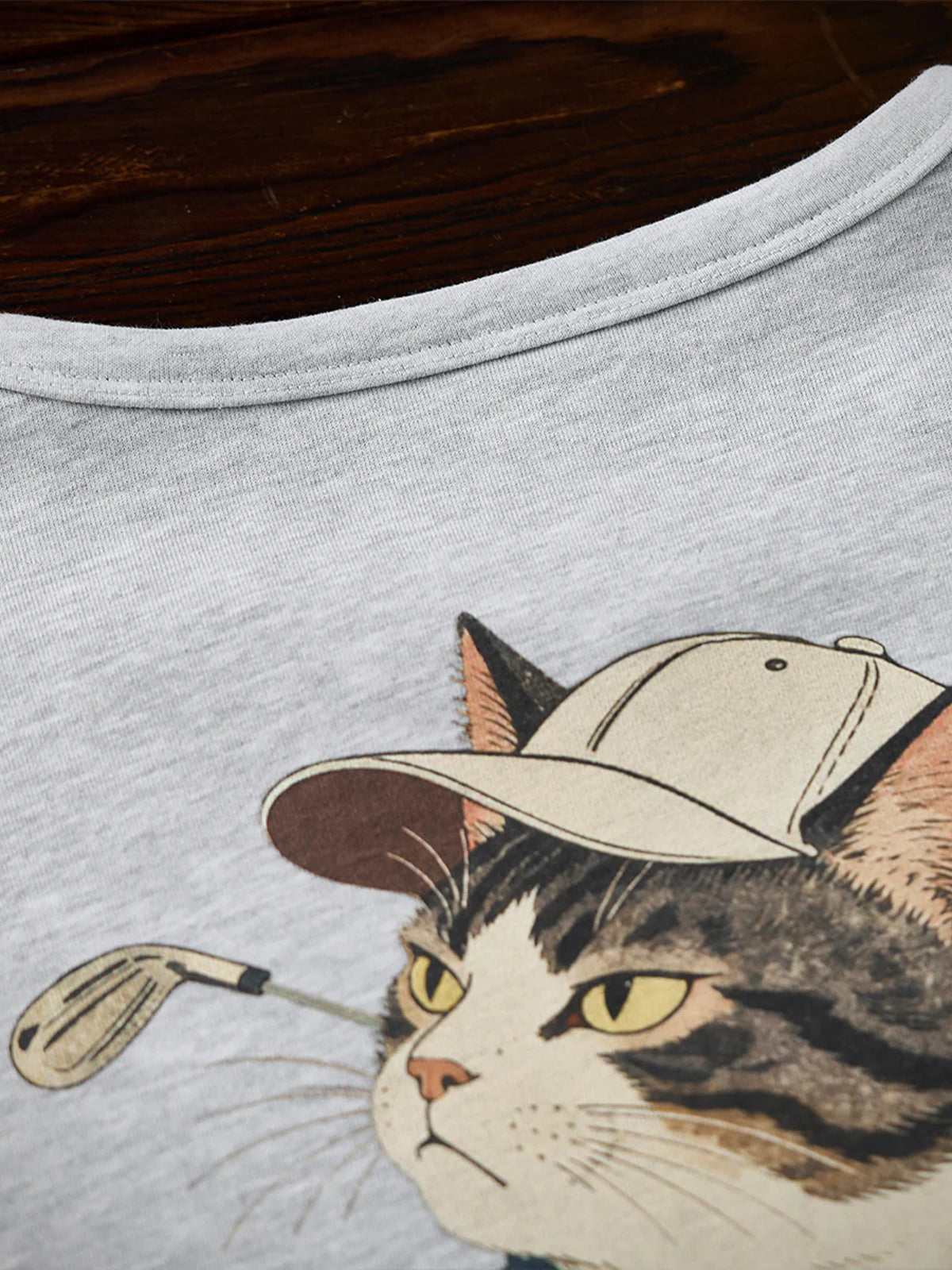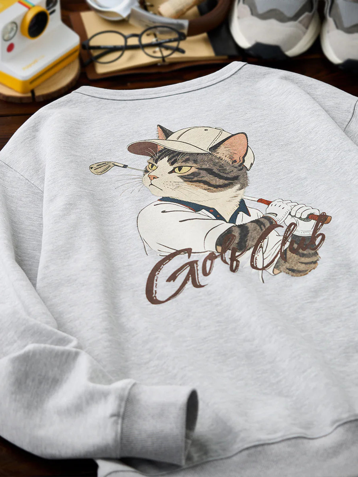 “Golf Cat’s Swing” Back-Print V-Gusset Pullover Sweatshirt