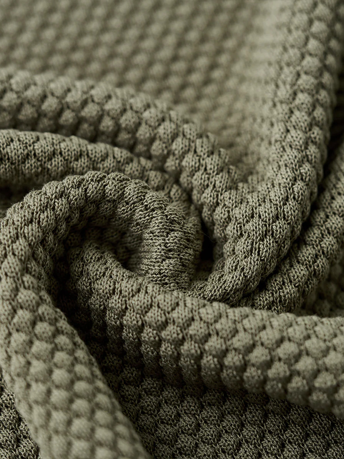 This item is a pineapple velvet knit sweater that expresses a three-dimensional sense, with an uneven texture. It is made of thick yarn, and the weave is delicate, beautiful, and strong. If you get a fairly heavyweight material, you can feel its texture. One piece weighs about 500 grams. Since it is a viscose and polyamide blended fabric, it has a comfortable feel similar to nylon fabric, and the bumpy and comfortable, plump and elastic feel is addictive. It is not sticky and easy to dry. It will not shrink easily even if you wash it by hand or use a washing machine. The fitted silhouette design is easy to move.