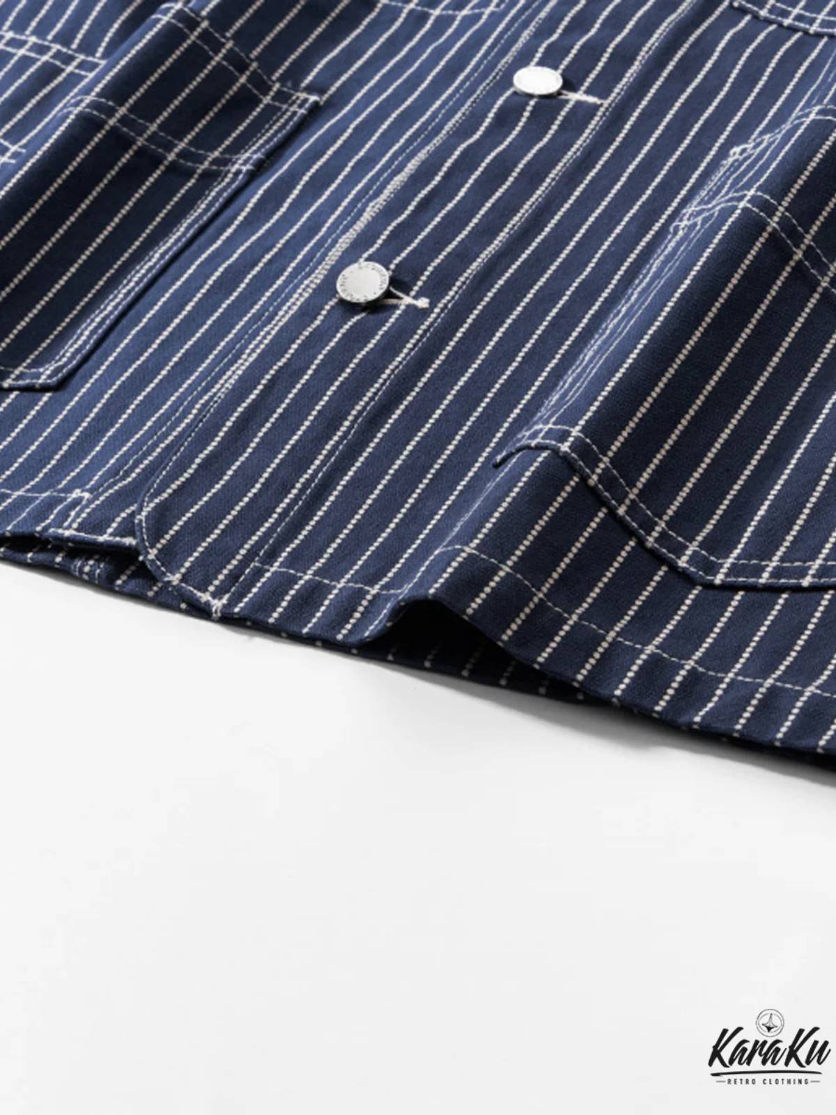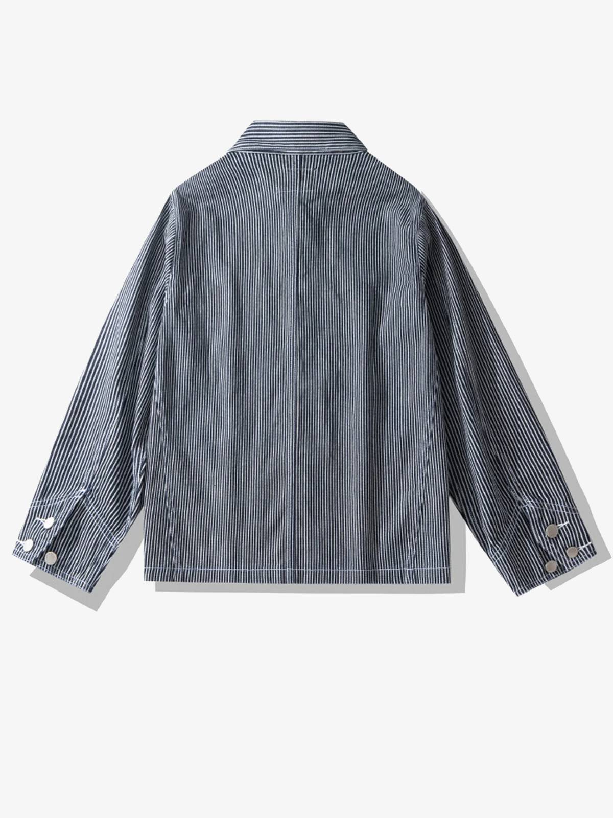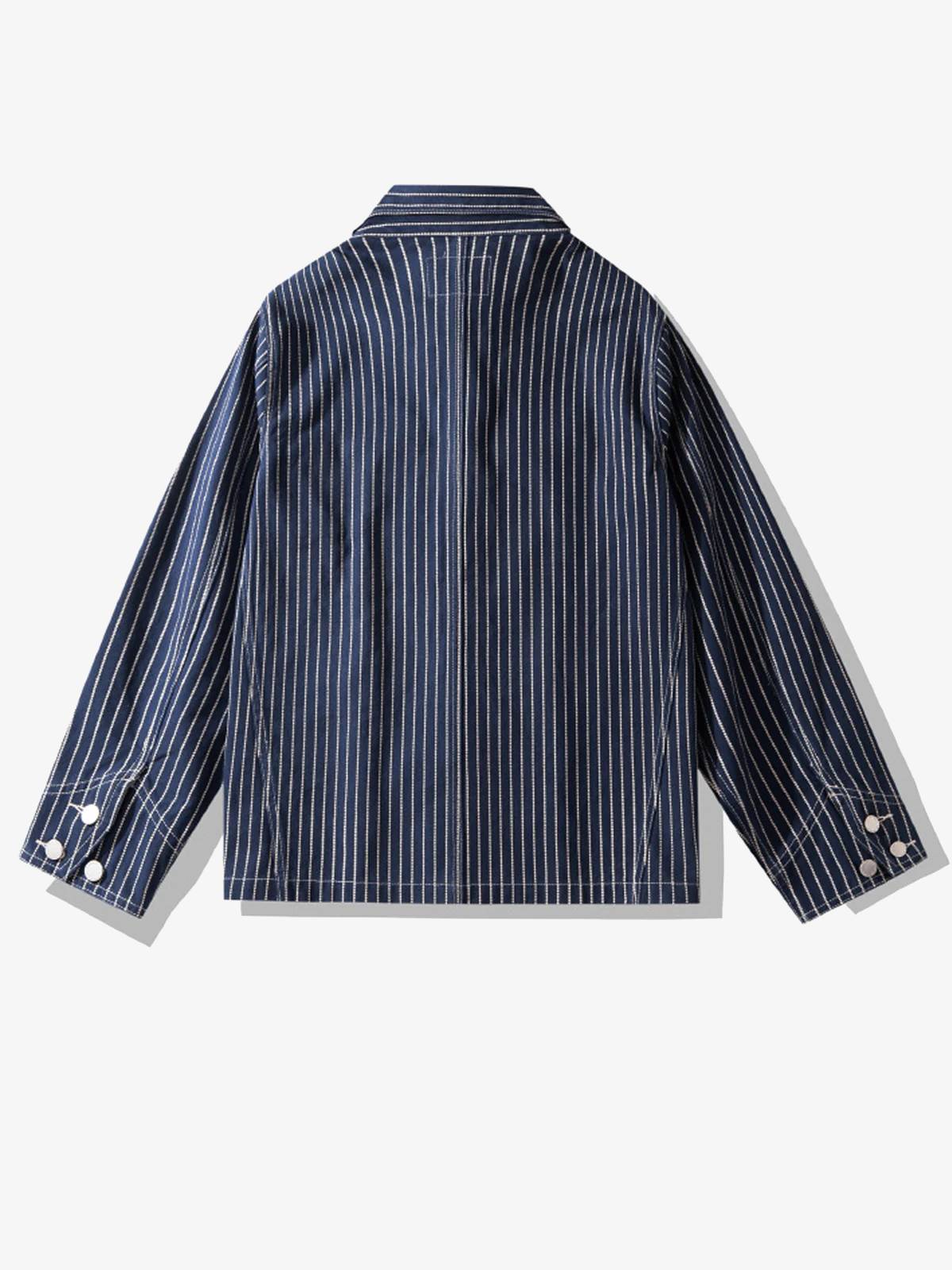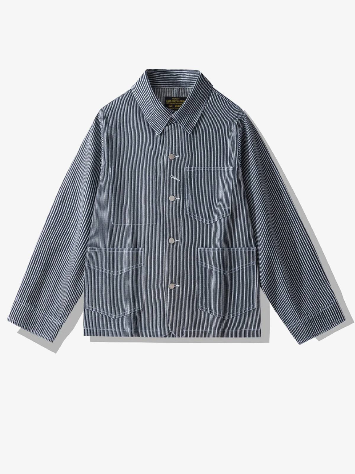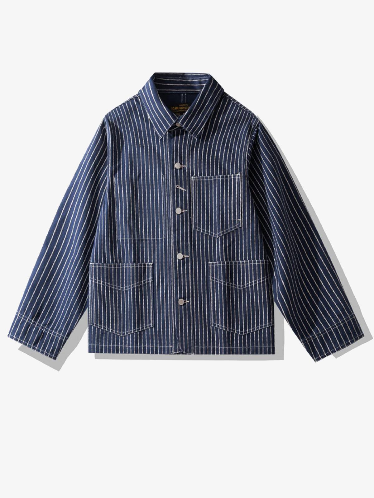 This wabash work jacket blends vintage charm with practical design, featuring three oversized patch pockets and reinforced stitching for durability. The washed denim offers softness and a unique fade over time, enhancing its retro appeal. Ideal for layering, pair it with T-shirts or turtlenecks for casual looks, or with chinos for versatile outdoor styling.